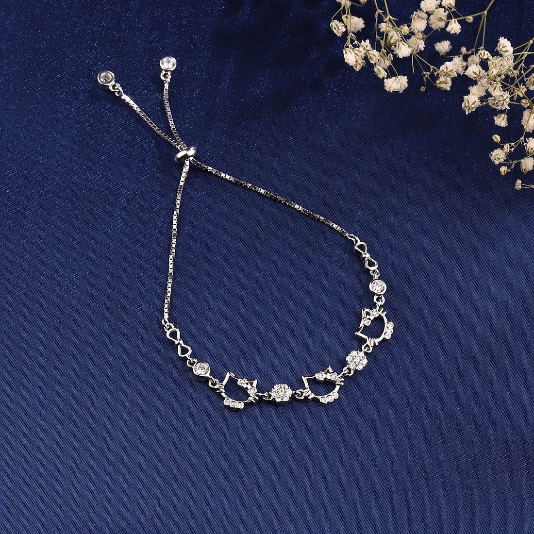 ✨ Whimsical Kitty Pavé Bolo Bracelet in 925 Silver