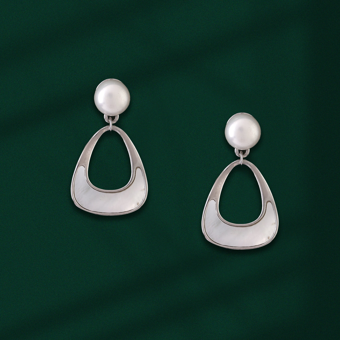 🌊 Minimalist White Shell 925 Silver Dangle Earrings