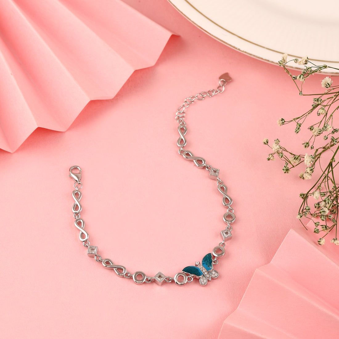 🦋 925 Silver Blue Enamel Butterfly Infinity Bracelet
