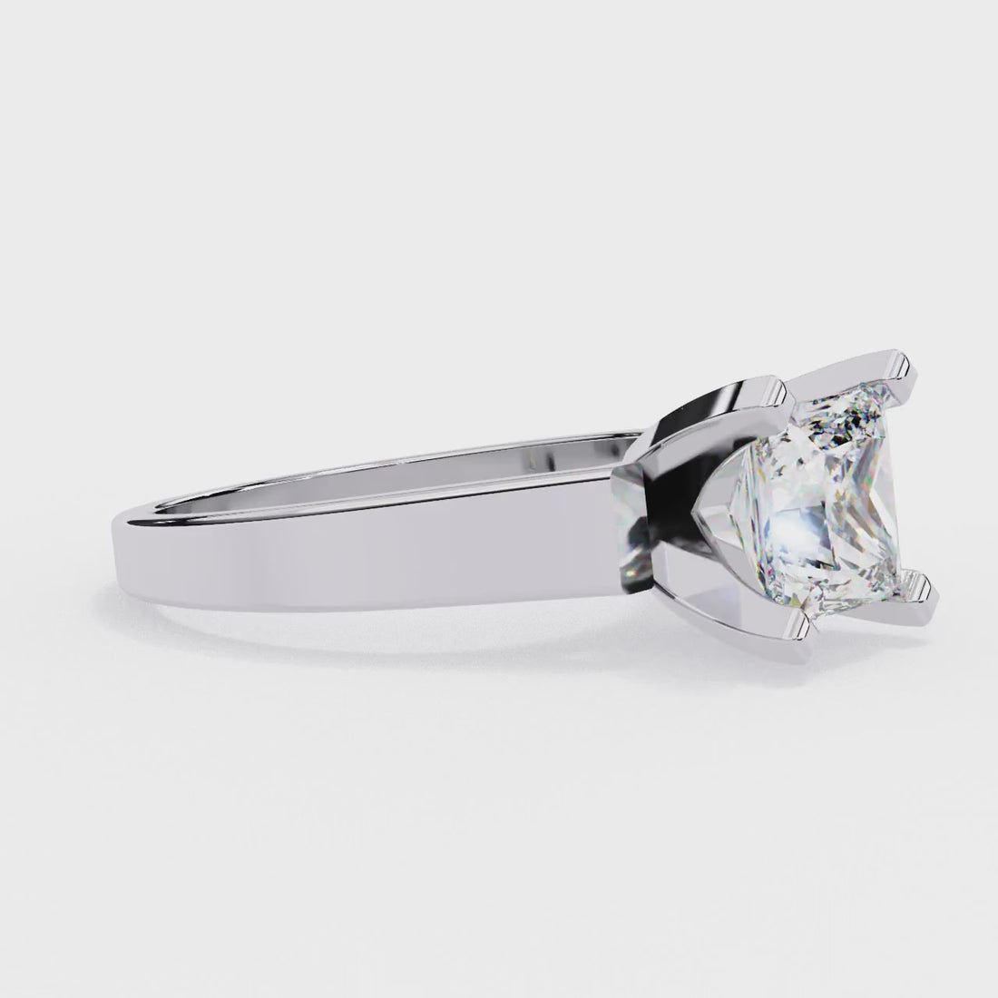 This elegant lab-grown diamond ring features a striking princess-cut solitaire, securely set in a modern...