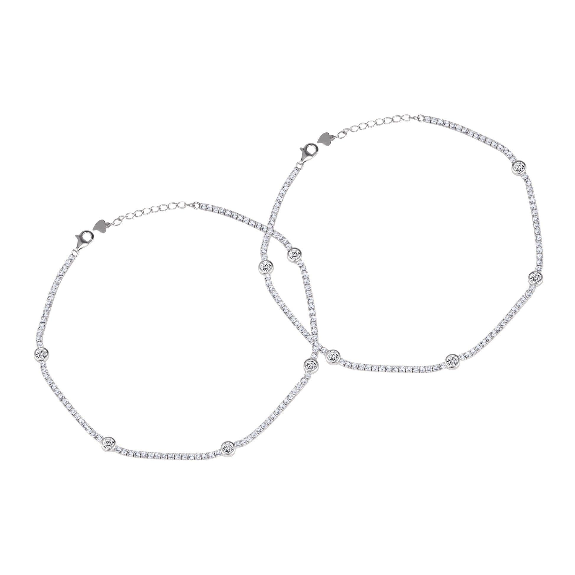 Add a touch of understated glamour to your style with this elegant 925 silver anklet pair. Featuring a delicate tennis-style design and sparkling zircon accents, these anklets are crafted to sit gracefully on the ankle. Made from high-quality 925 silver, they are lightweight, durable, and gentle on the skin. The adjustable chain allows a flexible fit, making them suitable for all-day wear. Perfect for pairing with dresses, ethnic wear, or casual outfits, these anklets offer timeless elegance with modern charm.