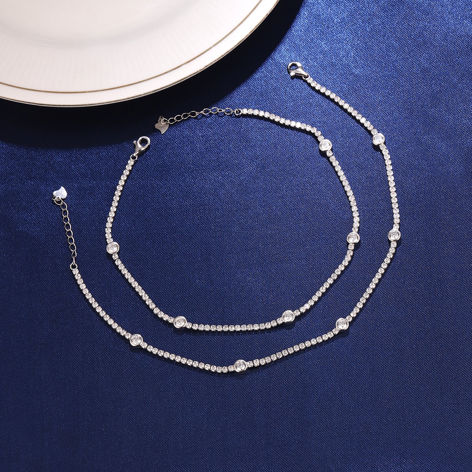 ✨ 925 Silver Zircon Tennis Anklet Pair