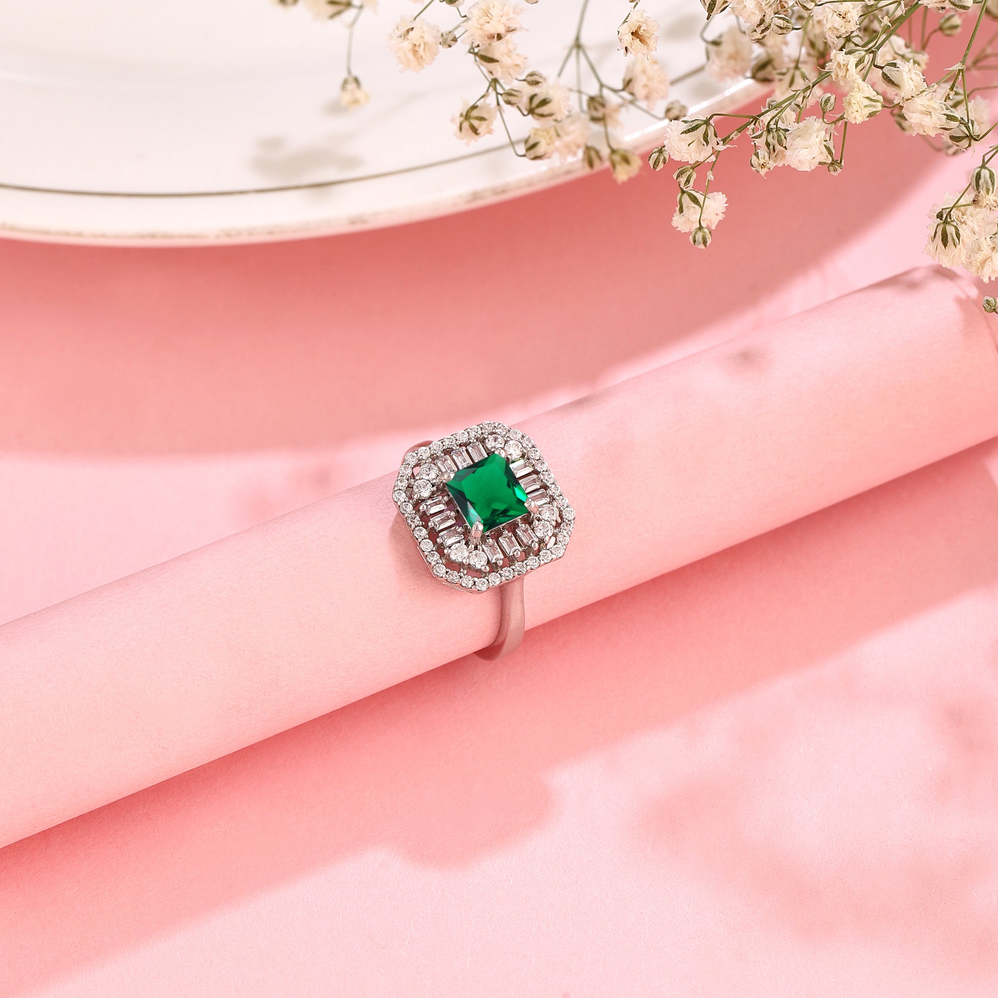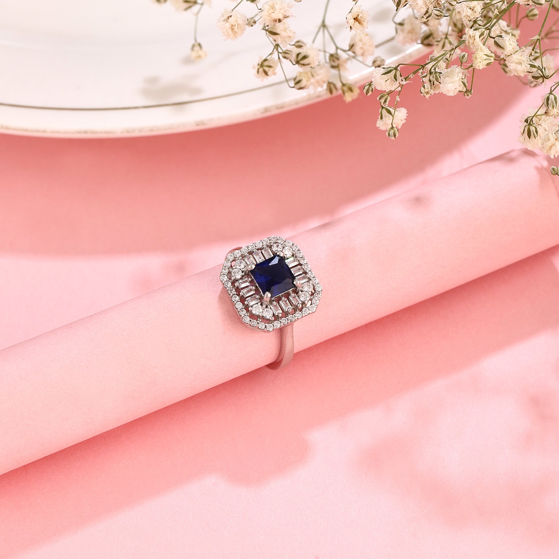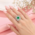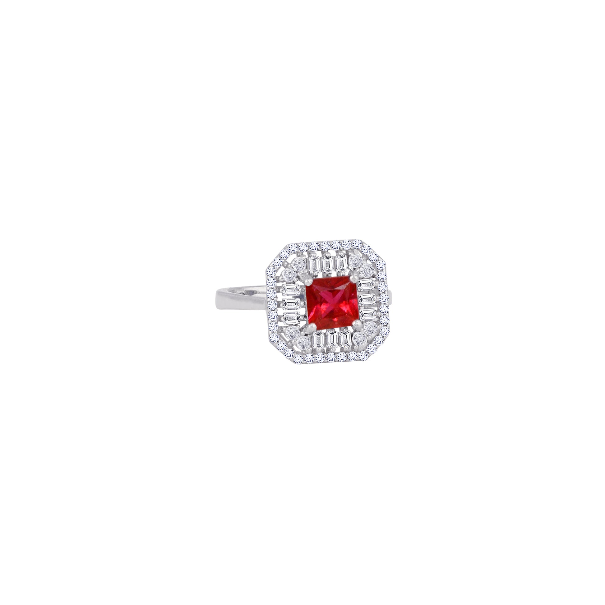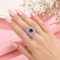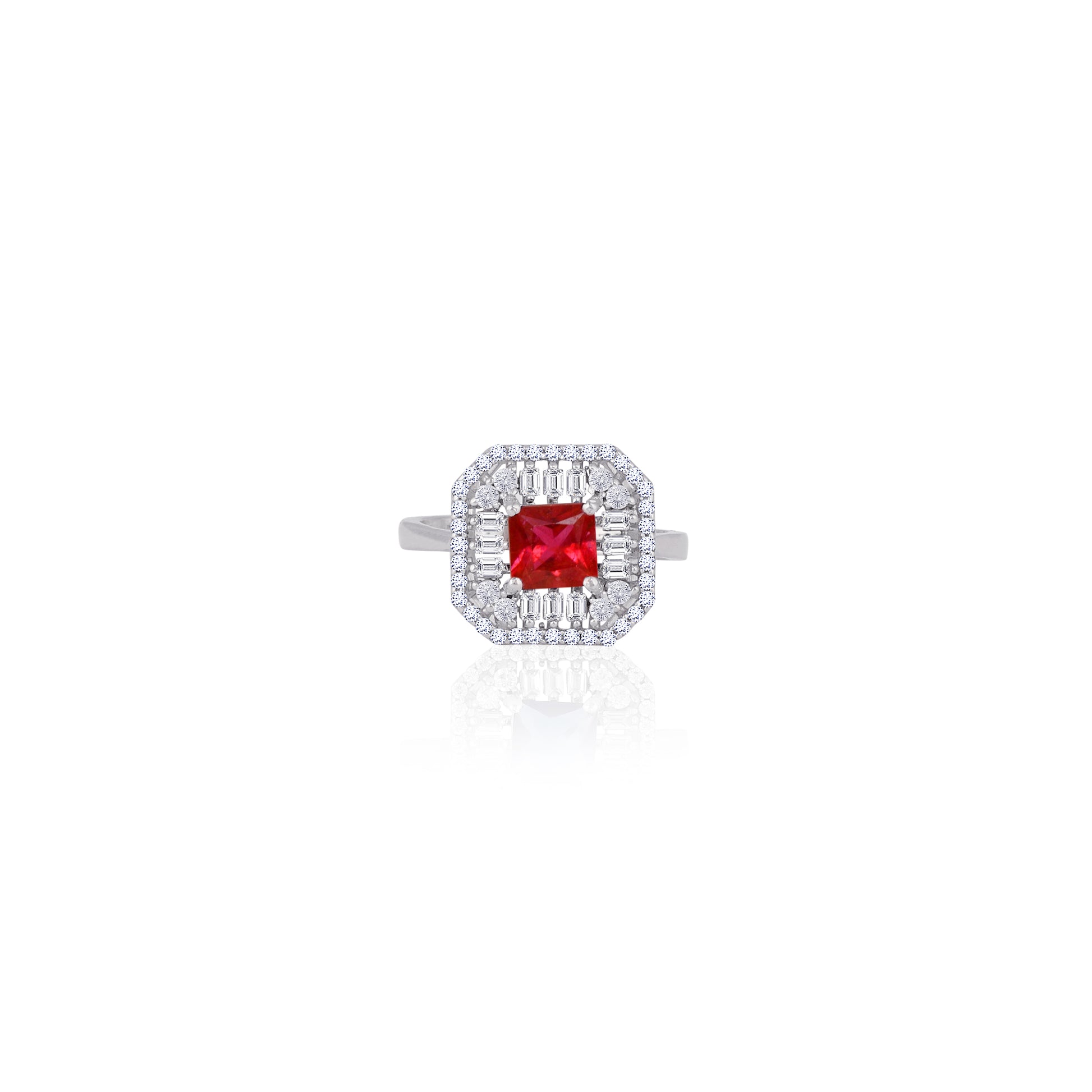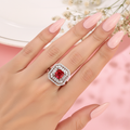 Experience pure, crystalline brilliance with this signature princess-cut collection, available in four breathtaking hues: timeless clear, royal blue, emerald green, and ruby red. Set in shimmering 925 silver, each ring features a sophisticated double-halo design and precision-cut baguettes that maximize sparkle and create a high-shine silhouette. Whether you choose the classic diamond-inspired "plain" variant for its icy radiance or a vibrant colored stone for a bold statement, this collection blends premium quality with effortless glamour, making it an essential choice for bridal wear or everyday luxury.