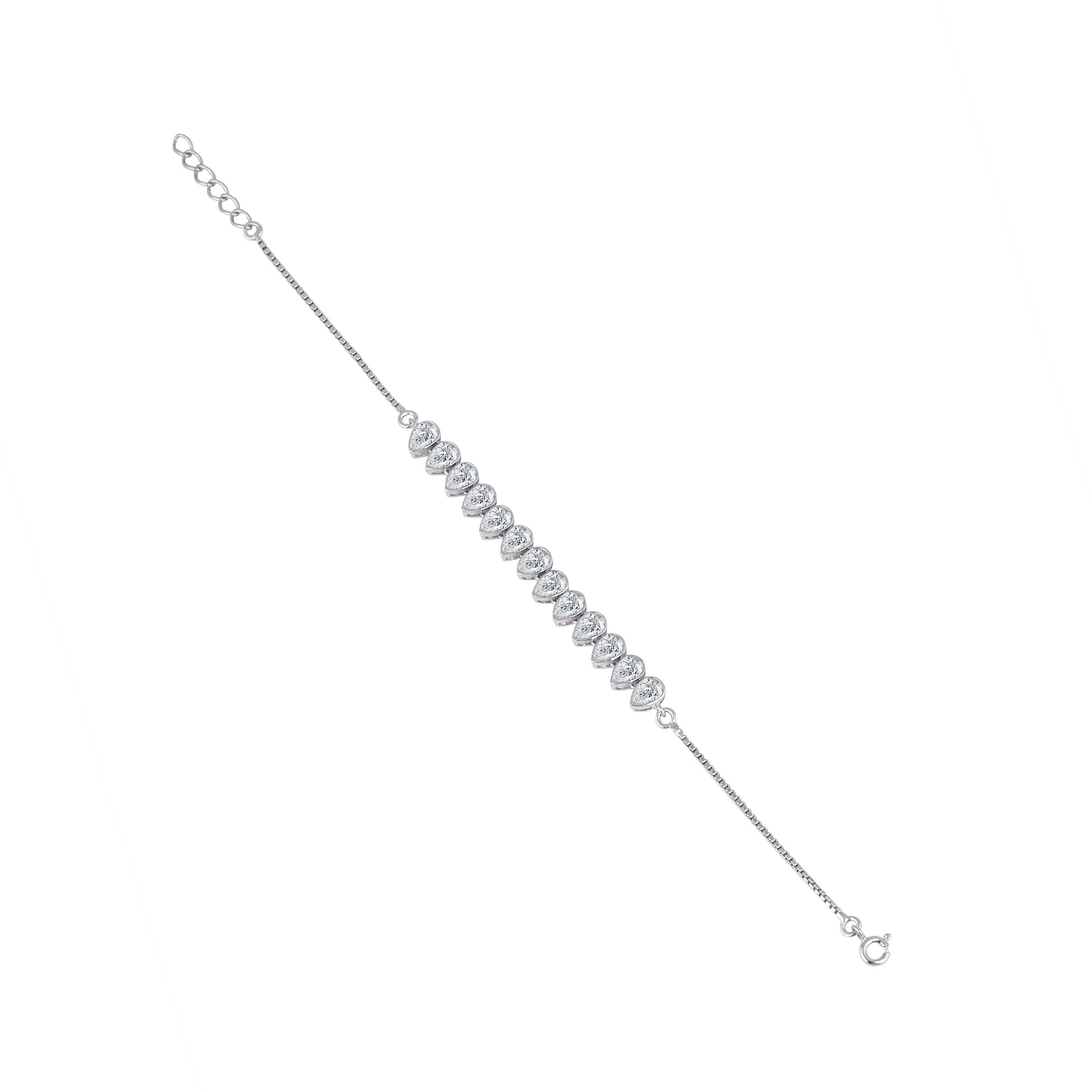Celebrate elegance with the unique silhouette of this pear-cut teardrop bracelet. Meticulously handcrafted from 925 silver, it showcases a stunning row of tapered stones that provide a captivating sparkle with every movement. Designed with a high-polish box chain, this bracelet lays flat against the skin for a smooth feel while remaining incredibly strong. This refined accessory is the perfect statement piece for those who appreciate modern, feminine design.