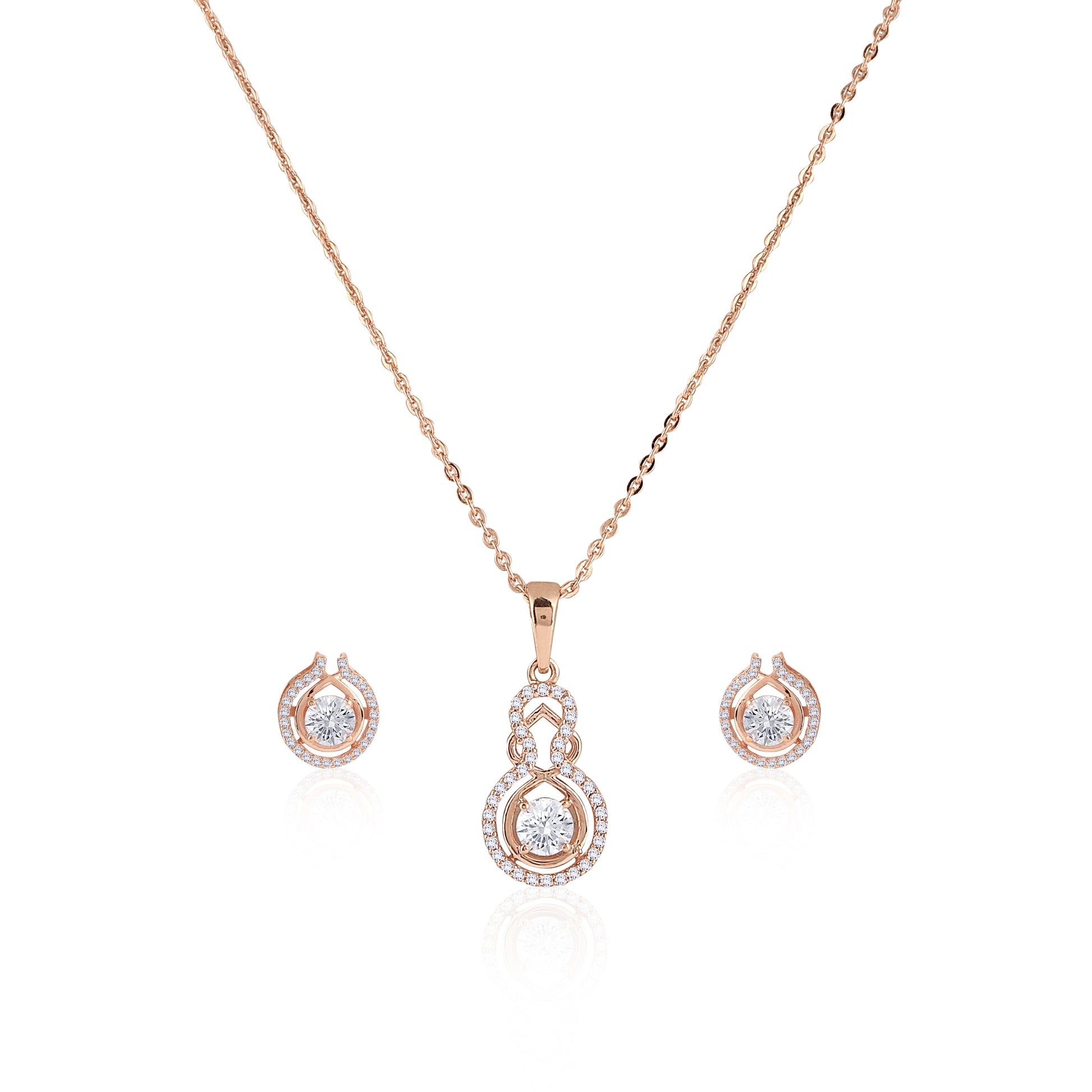 Add a touch of sophistication to your style with this beautifully crafted jewelry set, featuring 925 sterling silver enhanced with luxurious rose-gold plating. The set includes a stunning sparkling pendant and matching earrings, each designed with a brilliant center stone encircled by delicate pavé accents. Perfect for both everyday elegance and special occasions, this set blends timeless charm with modern shine. A refined gift choice for someone special — or a gorgeous treat for yourself.