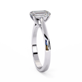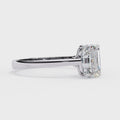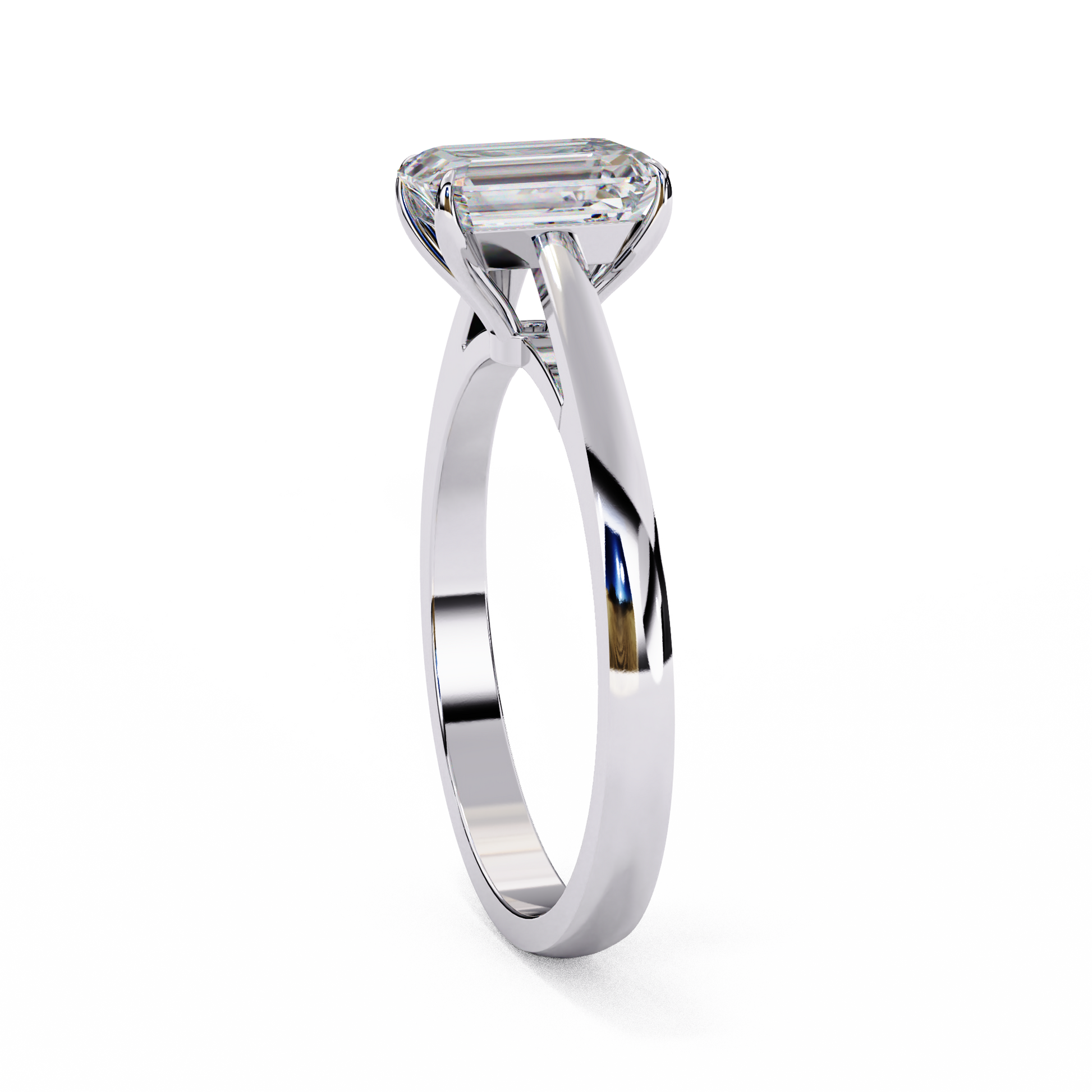 Elegant in its simplicity, this ring highlights a striking emerald-cut lab-grown diamond set in a sleek four-prong setting that emphasizes the stone’s clean lines and timeless beauty. The polished platinum band provides a modern, minimalist backdrop, allowing the center diamond’s step-cut facets to radiate with refined brilliance. A sophisticated symbol of love, this design is perfect for those who cherish understated luxury with eco-conscious values