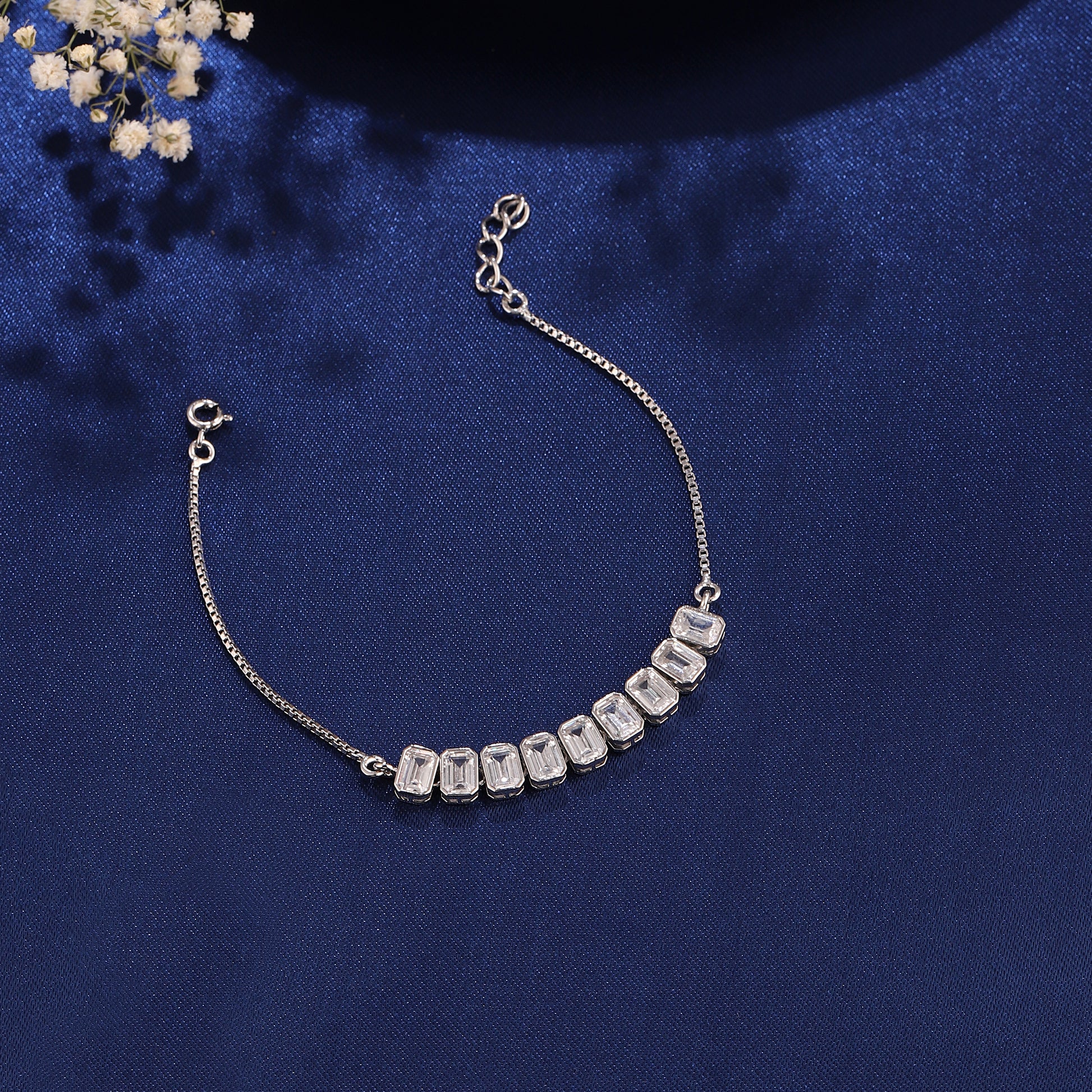✨ Emerald-Cut Radiant Bar Bracelet in 925 Silver