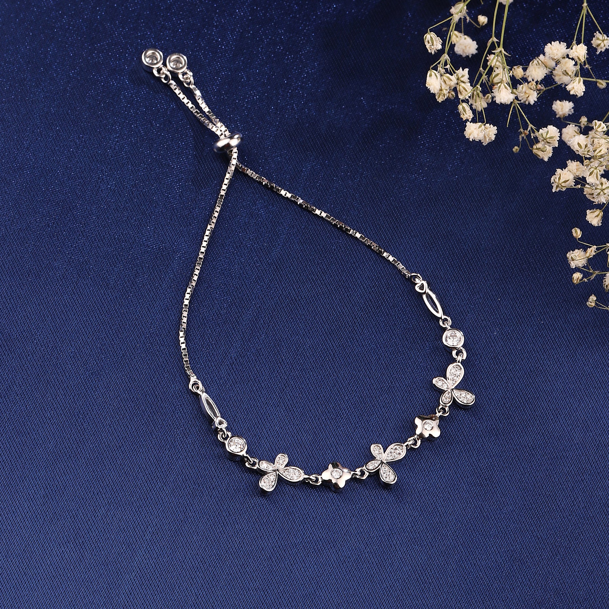 ✨ Radiant Pavé Flora Bolo Bracelet in 925 Silver