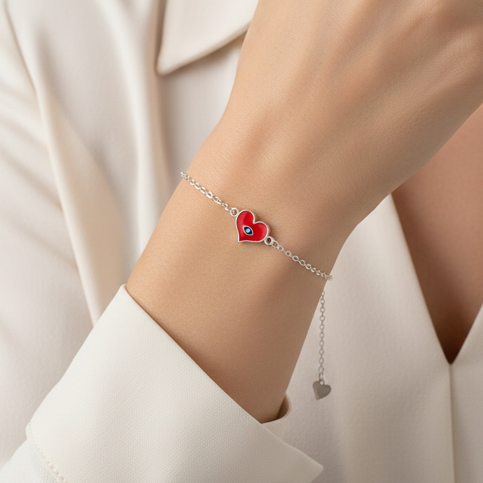 Share love and smiles with this cute 925 Silver bracelet featuring a bright red heart charm at the center. Made with smooth, skin-friendly materials, it’s gentle for everyday wear and crafted to last. The adjustable chain ensures a secure and comfortable fit as your child grows, making it both practical and stylish. This kids bracelet adds a pop of love and color to any outfit — an adorable gift for birthdays, special occasions, or just to show how much they are cherished!