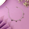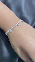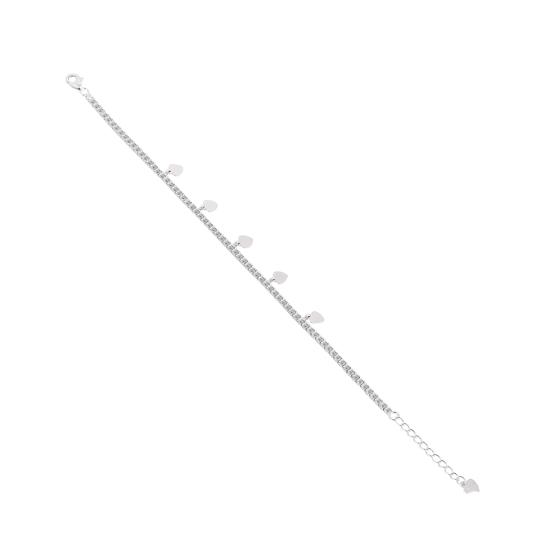 This classic yet playful bracelet elevates the traditional tennis style with a touch of whimsy. The entire band is composed of a continuous row of brilliant-cut stones set closely together for continuous, dazzling sparkle. Suspended along the bottom edge are five small, polished heart-shaped charms that gently catch the light as you move. Crafted in high-quality 925 Sterling Silver, this bracelet features a secure lobster clasp and an extension chain for an adjustable, comfortable fit.