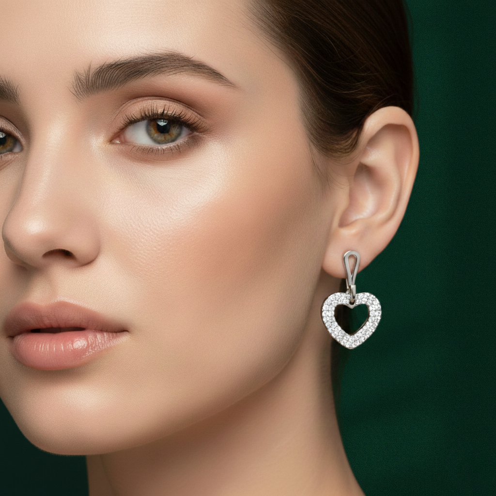 These romantic and dazzling drop earrings are expertly crafted from genuine 925 silver, featuring an open heart silhouette completely adorned with brilliant, tightly-set pave crystals for maximum sparkle. The classic symbol of love, these timeless earrings are lightweight and perfect for adding a glamorous yet heartfelt touch to any occasion, from casual wear to a special date night. Their exquisite shine makes them an ideal gift to express affection and enduring commitment.