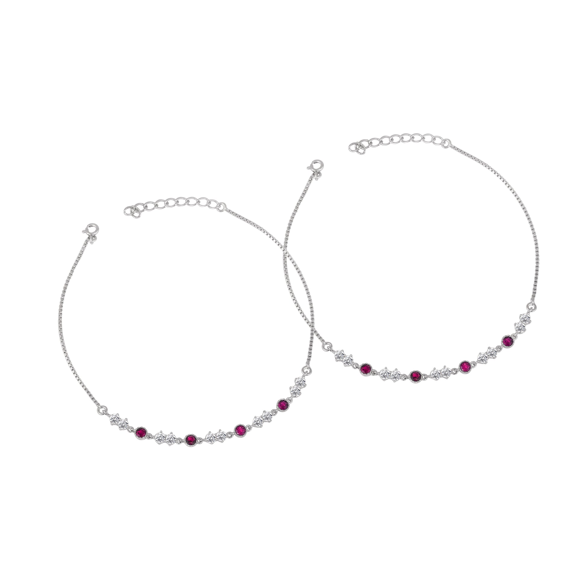 ❤️ Ruby Sparkle Line 925 Silver Anklet Duo
