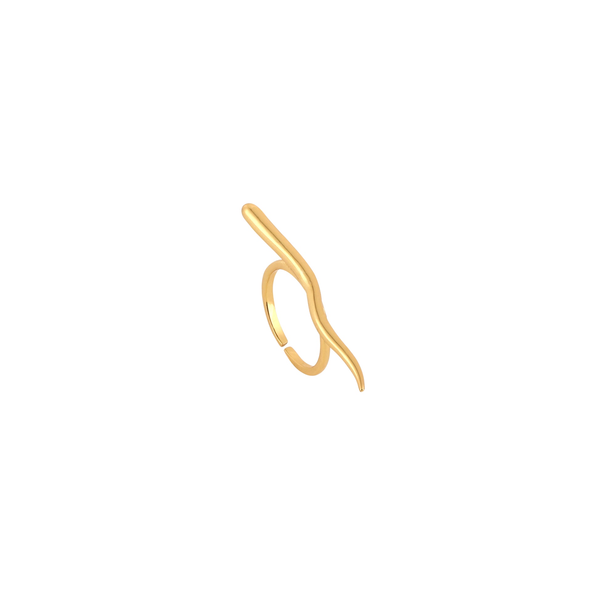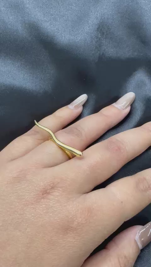 Capturing the essence of movement and grace, the Fluid Wave Statement Ring is a testament to the beauty of organic minimalism. This unique design features a single, sweeping gold-toned line that mimics the gentle crest of a wave, wrapping elegantly around the finger to create a striking sculptural silhouette. Meticulously crafted from high-quality 925 silver with a rich gold finish, its seamless, high-polish surface reflects light with a soft, liquid-like glow.