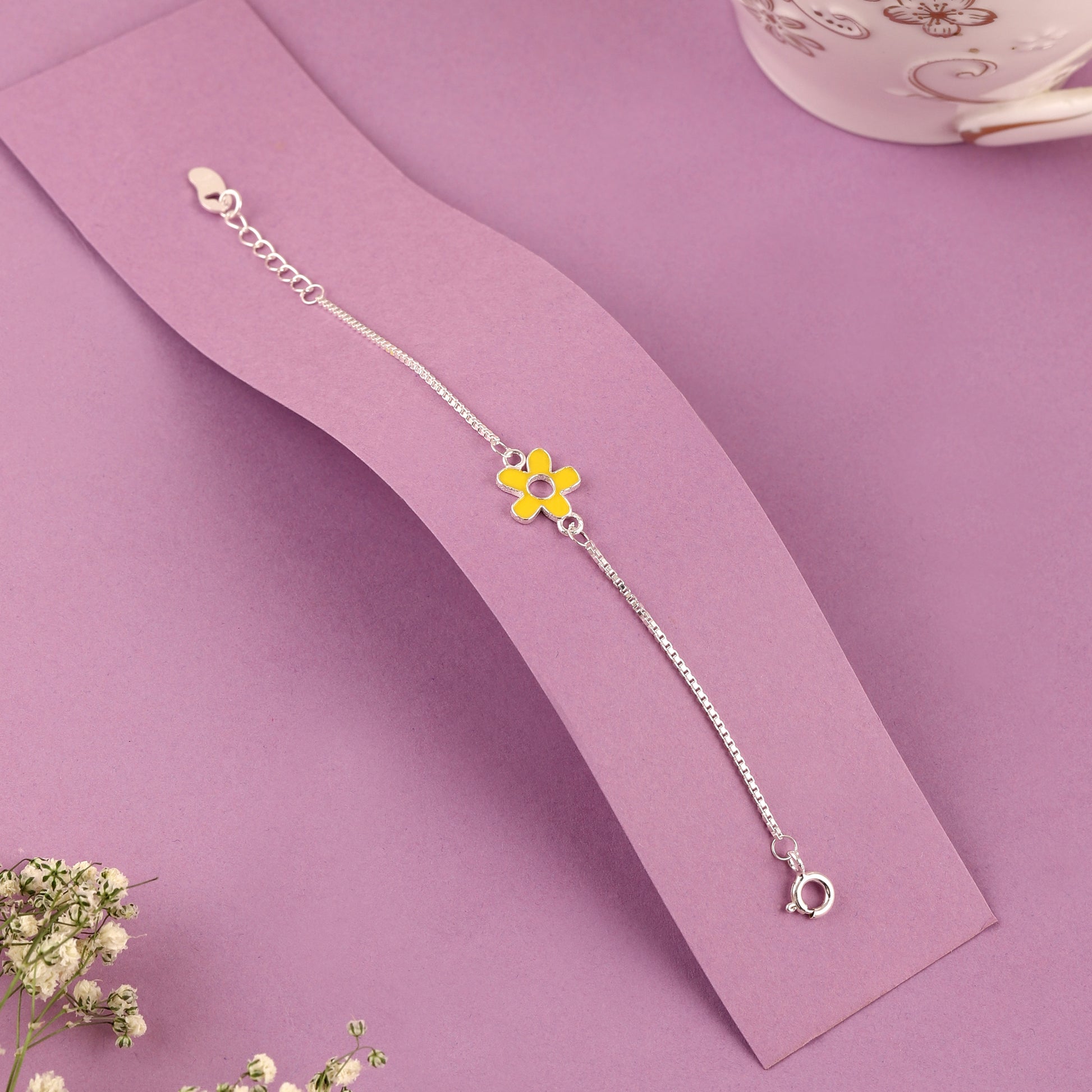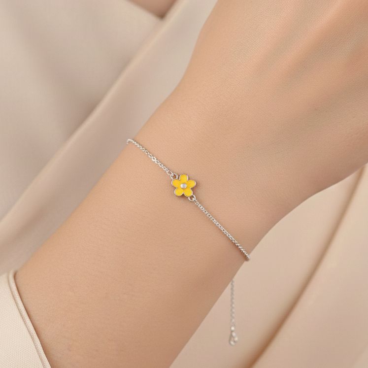 🌼 925 Silver Yellow Flower Kids Bracelet