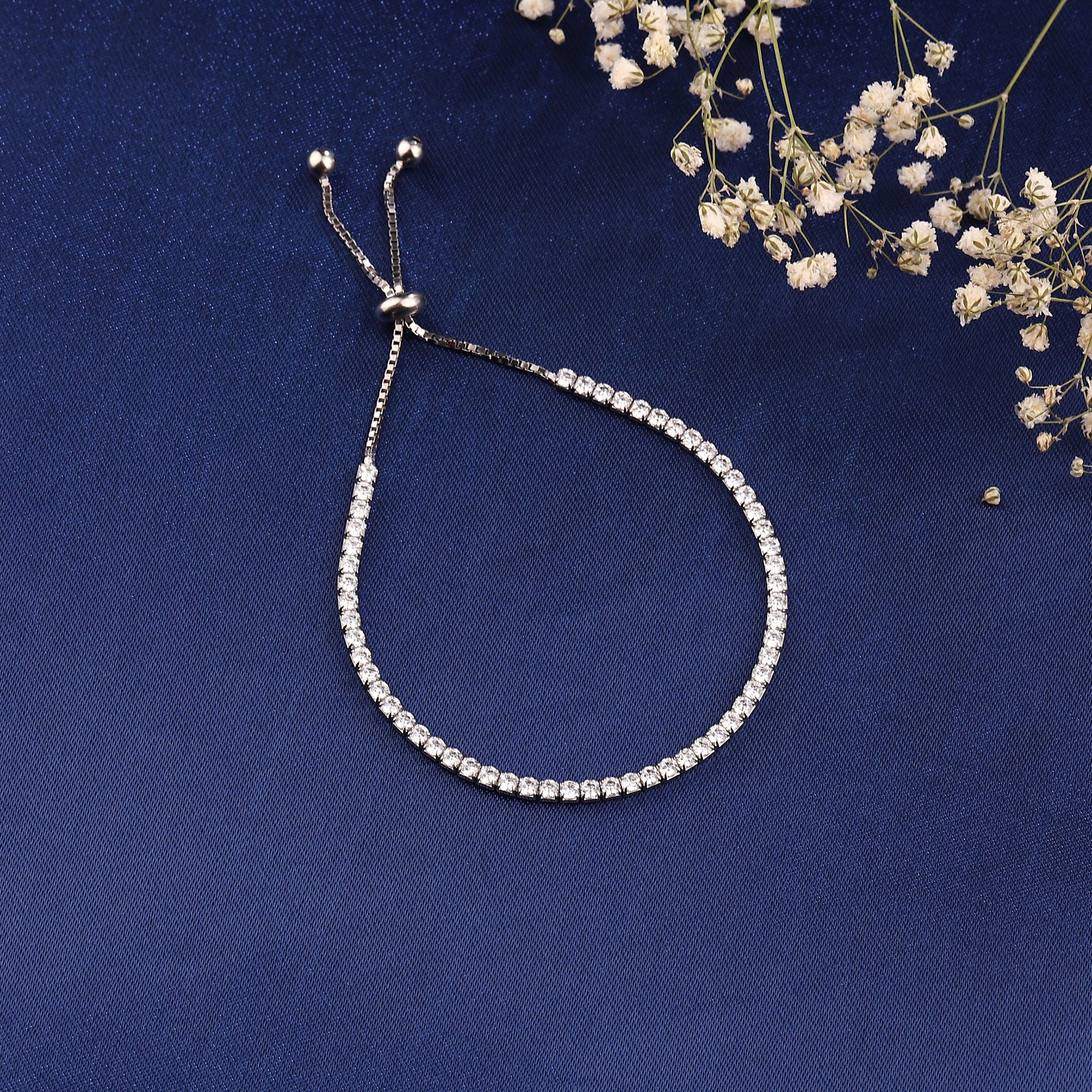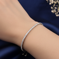 Illuminate every movement with the Eternal Sparkle Tennis Bolo Bracelet, a classic redefined for the modern woman. Crafted in luminous 925 silver, this piece features a continuous line of brilliant-cut crystals that offer a sophisticated, uninterrupted shimmer around the wrist. The sleek adjustable bolo closure, finished with two delicate silver beads, ensures a perfect, custom fit while adding a contemporary touch to the timeless tennis style.Β