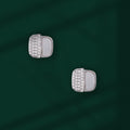 These compact and stylish stud earrings are crafted from genuine 925 silver, featuring a unique split design that combines texture and brilliance for a contemporary look. One half of the rounded square silhouette is covered in glittering pave-set crystals, while the other side showcases a smooth white enamel or shell inlay. This sophisticated contrast makes them perfect for adding a touch of contemporary glamour to your everyday wear.