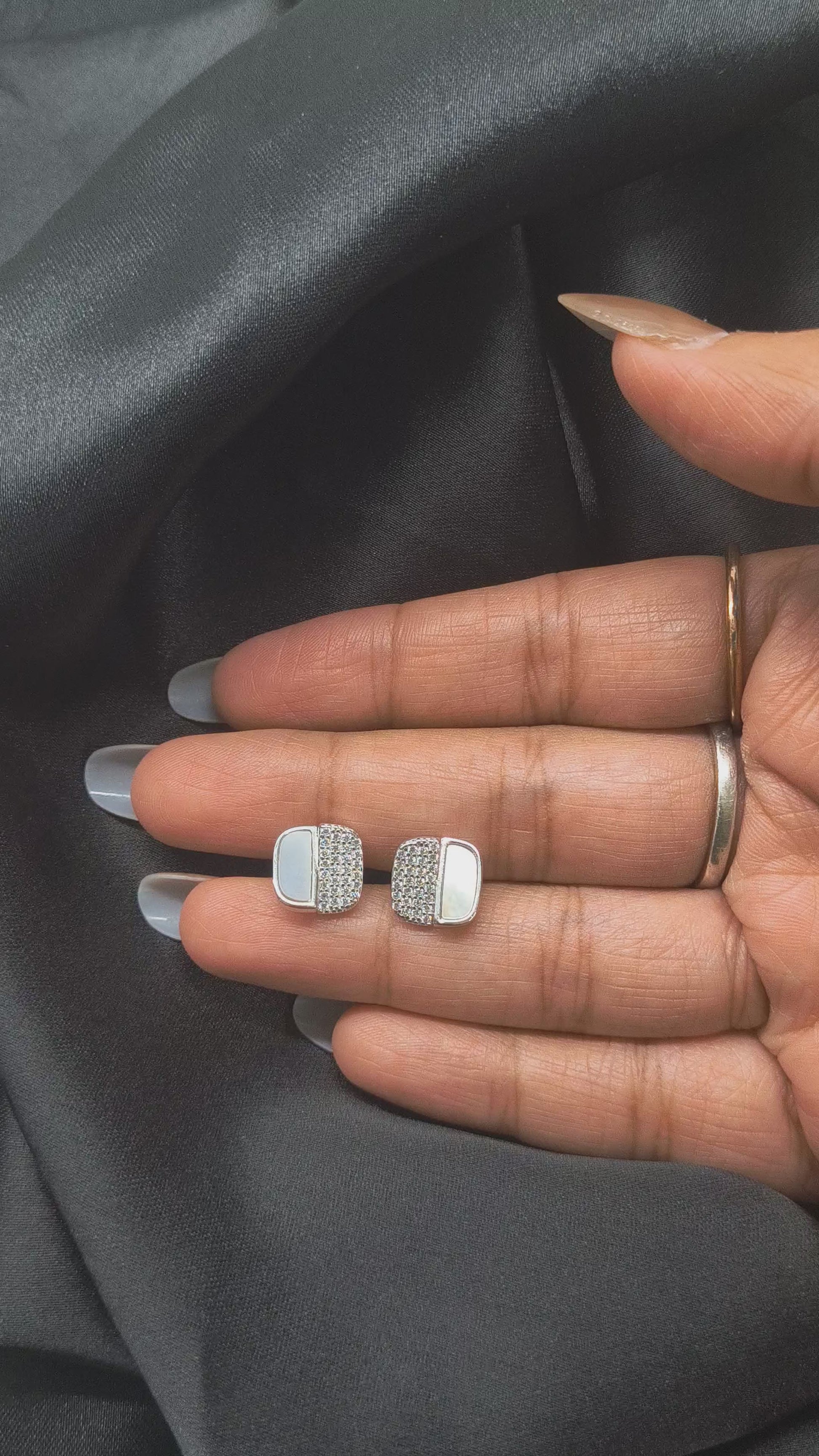 ๐ Luxe Pave & Mother of Pearl Studs in 925 Silver
