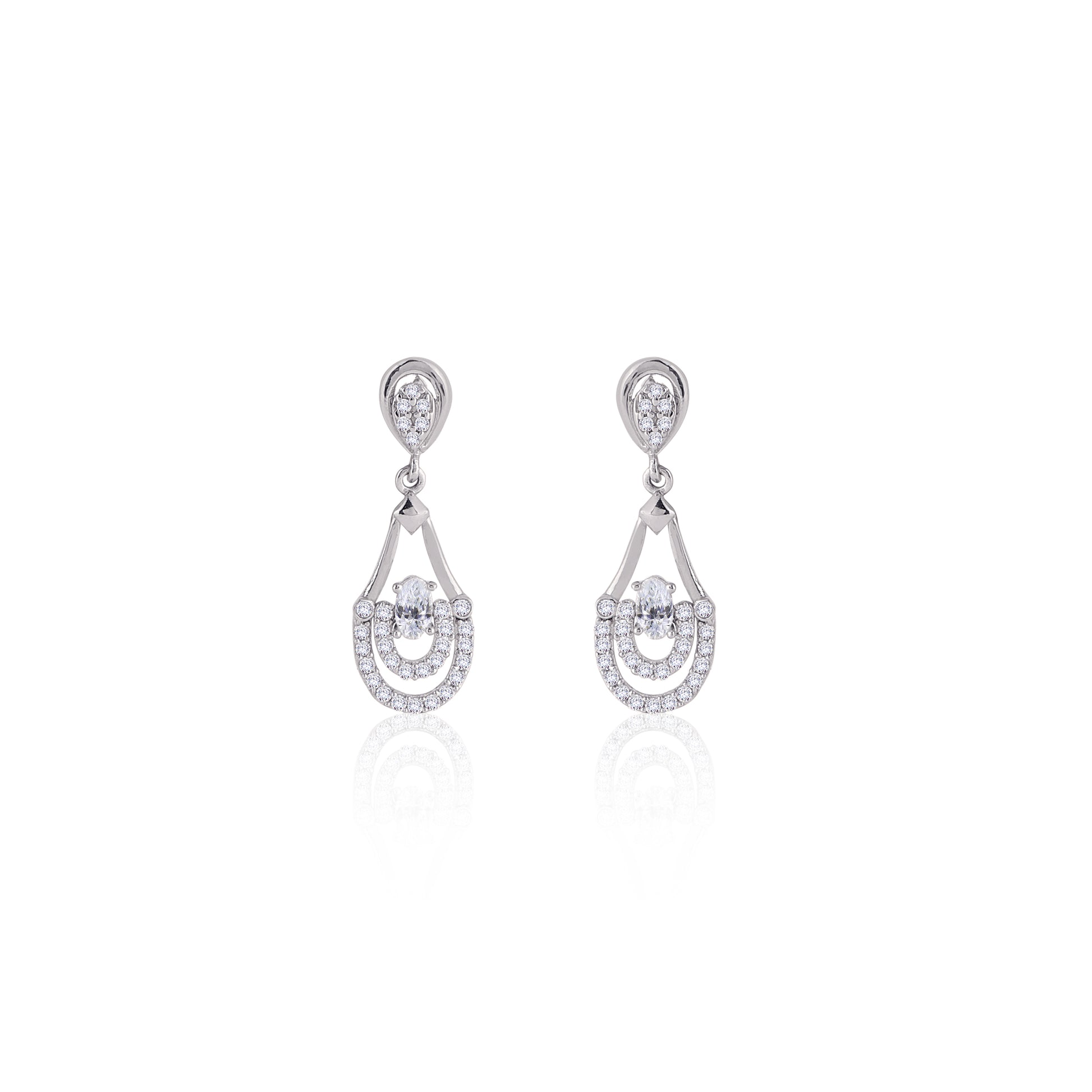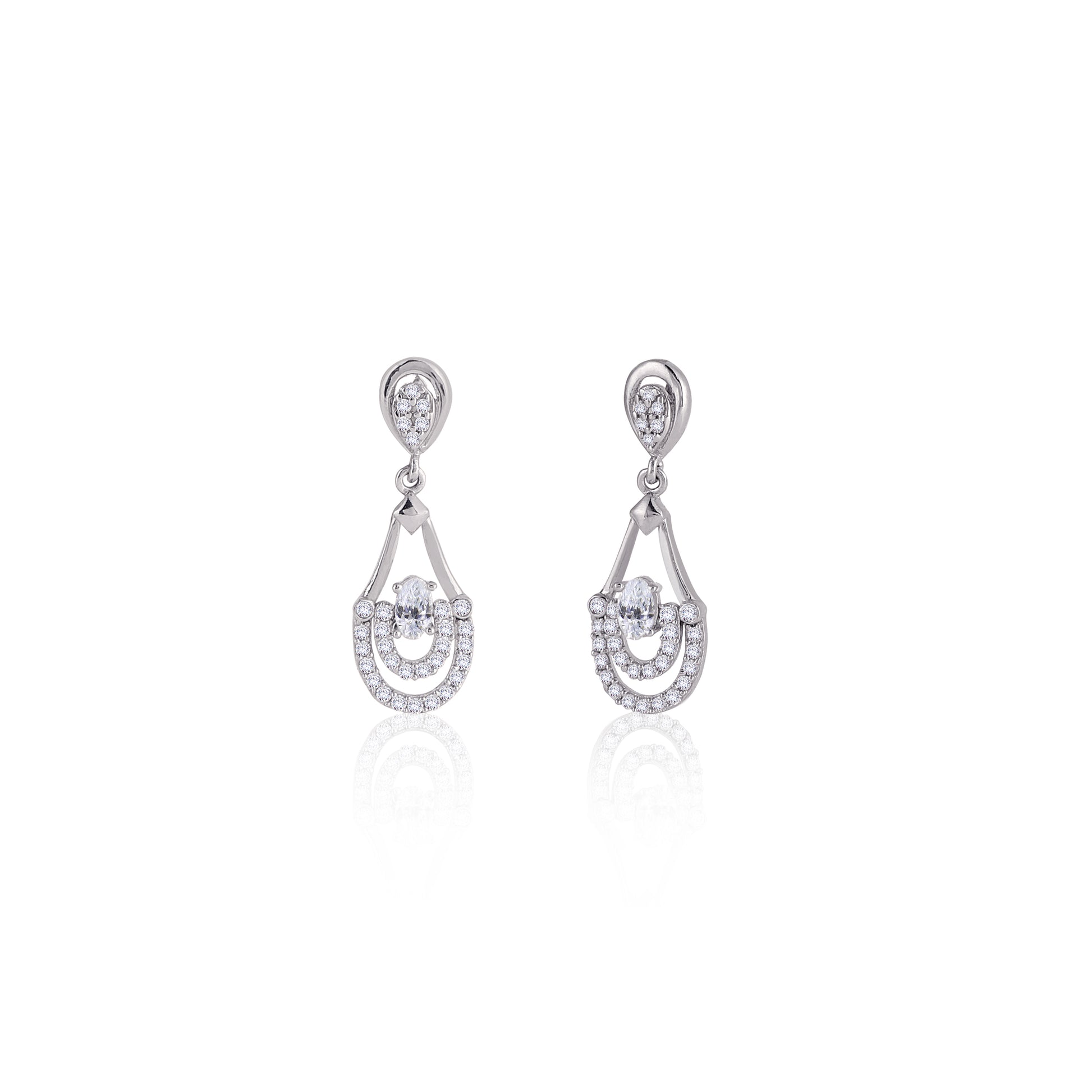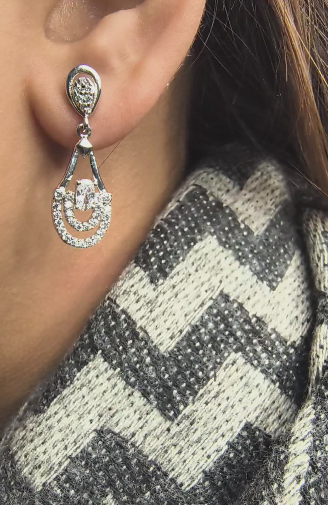 💎 925 Silver Modern Oval & Pavé Teardrop Dangle Earrings