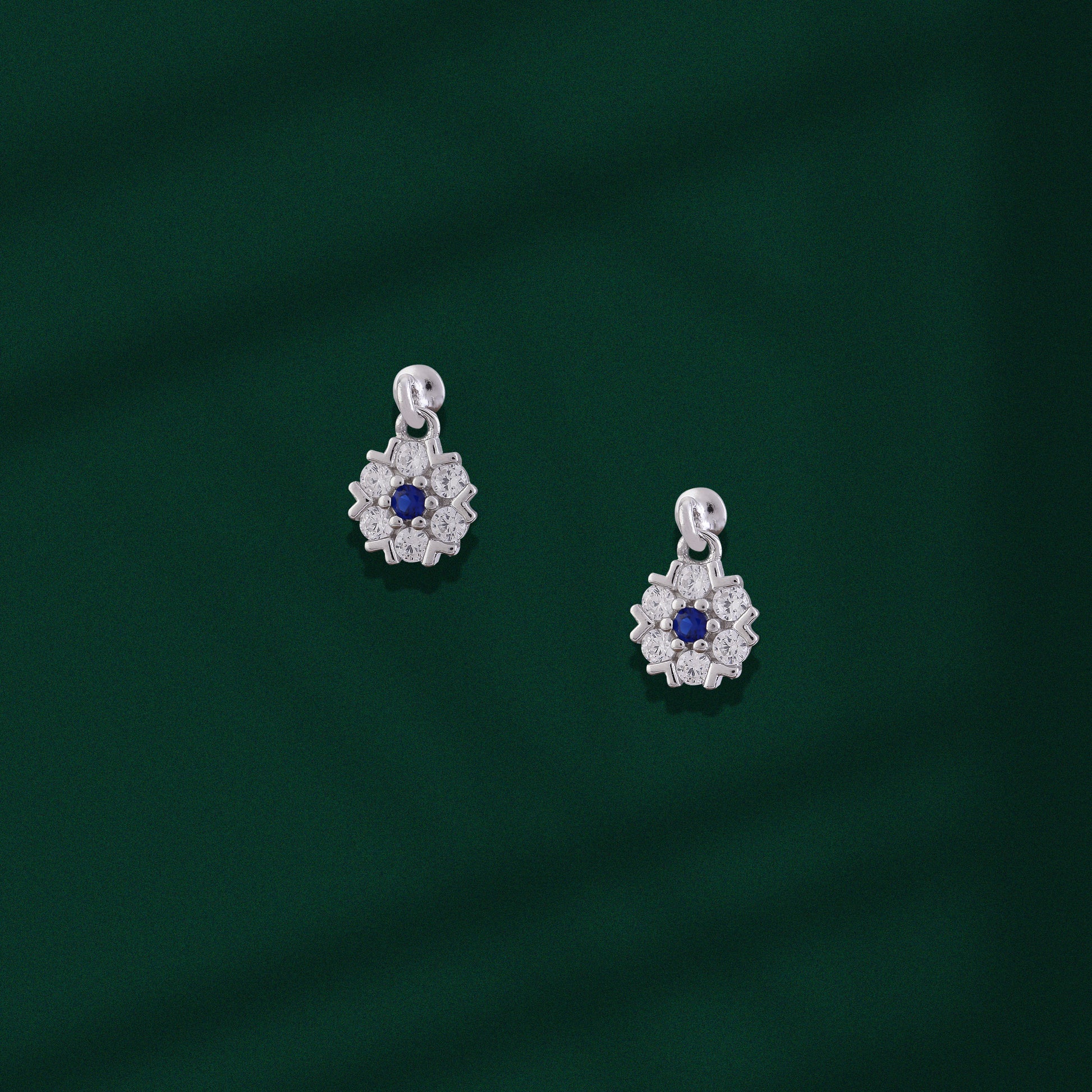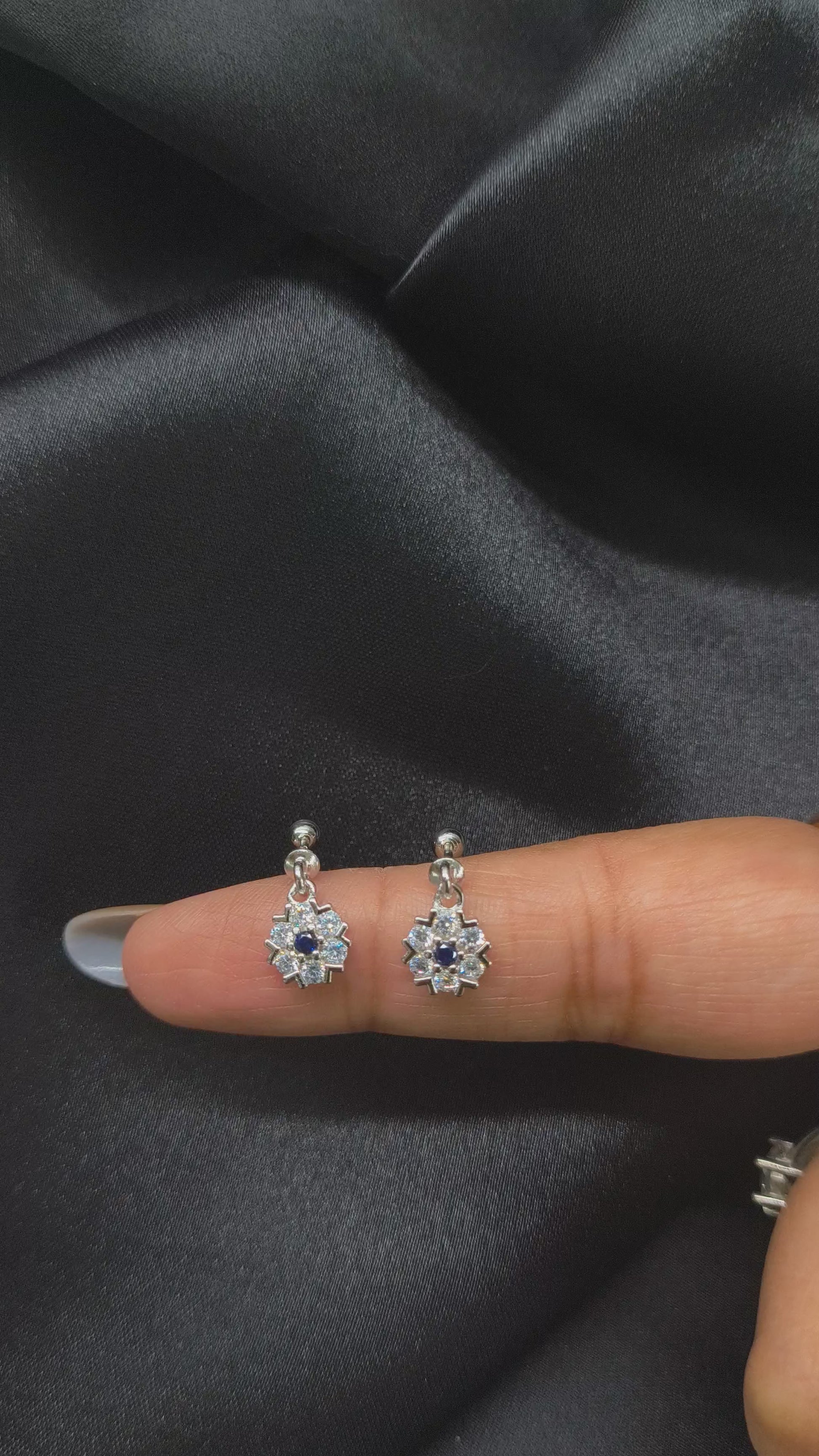๐ 925 Silver Royal Sapphire Cluster Dangle Earrings