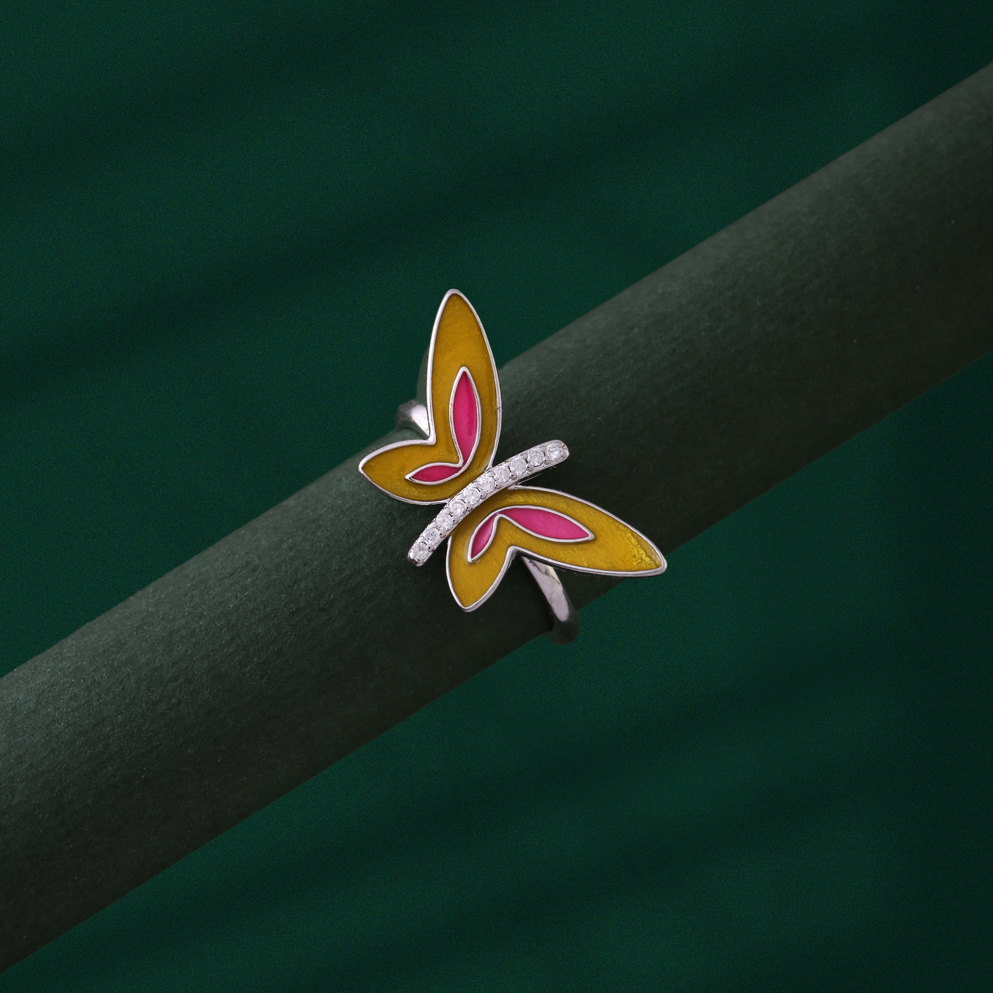 π Bright Bloom Enamel 925 Silver Butterfly Ring