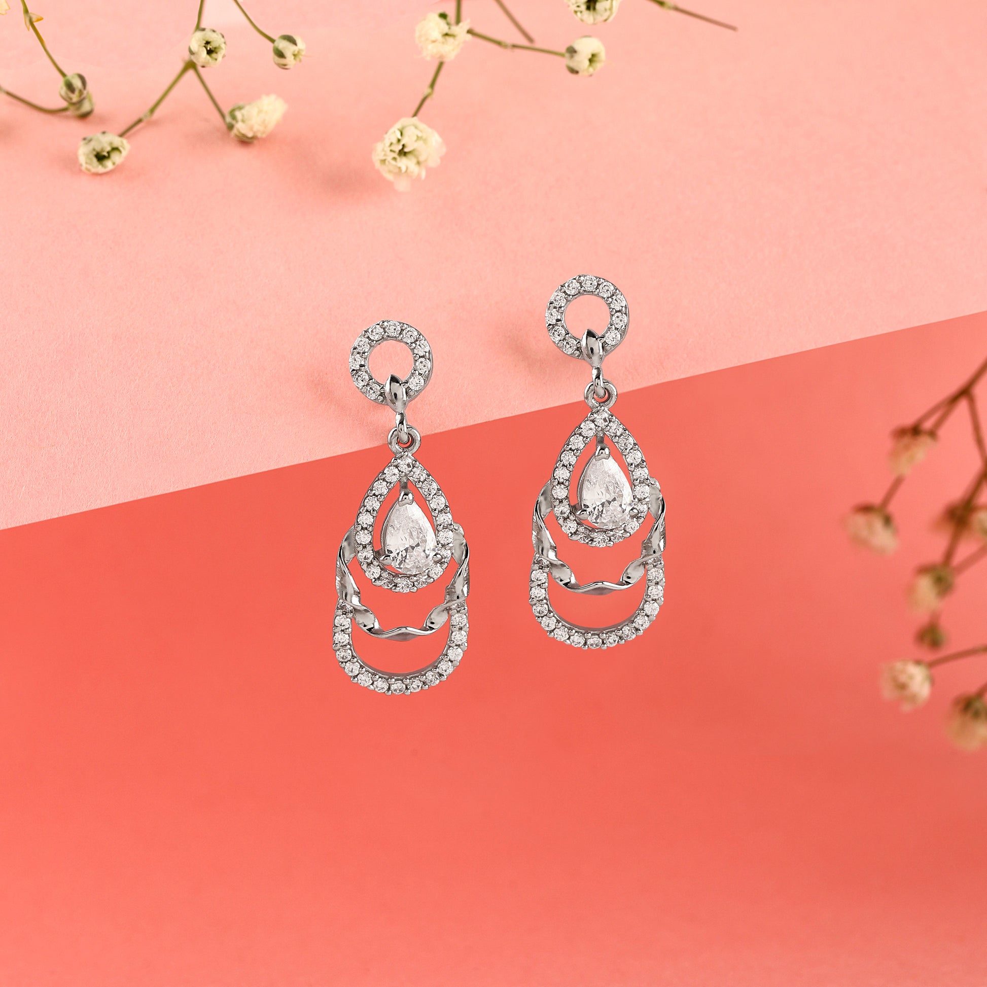 💧 925 Silver Triple-Layer Teardrop Dangle Earrings