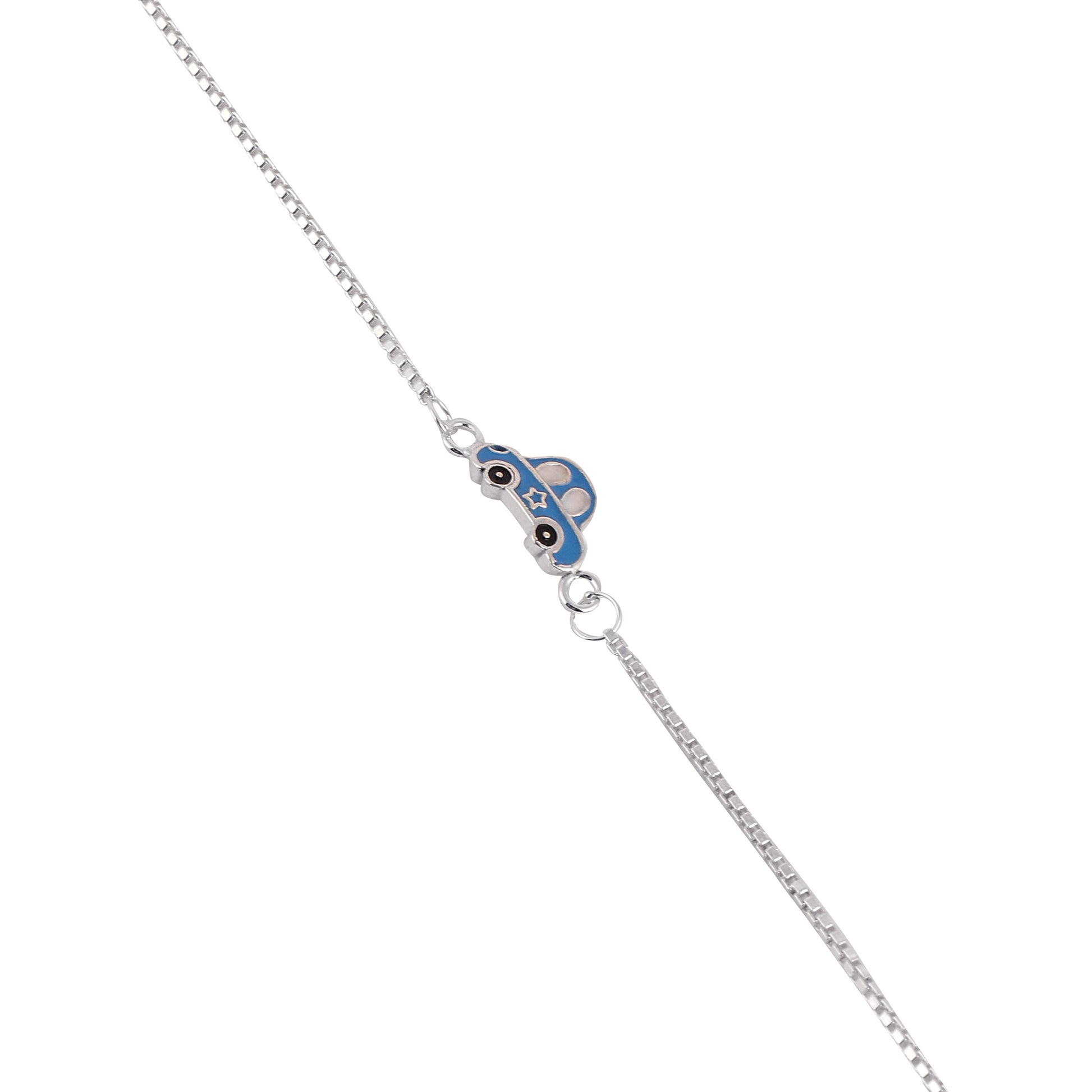 🚗 925 Silver Blue Car Kids Bracelet