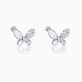 Delicate and graceful, the Elegance in Flight Butterfly Earrings of 92.5 Silver feature a beautiful butterfly design with luminous mother-of-pearl wings. Accentuated by sparkling crystal accents on the body and wings, these 92.5 Silver Earrings capture the essence of lightness and beauty. Crafted in a polished silver-tone setting, they offer a perfect blend of elegance and charm, making them ideal for both casual wear and formal occasions.