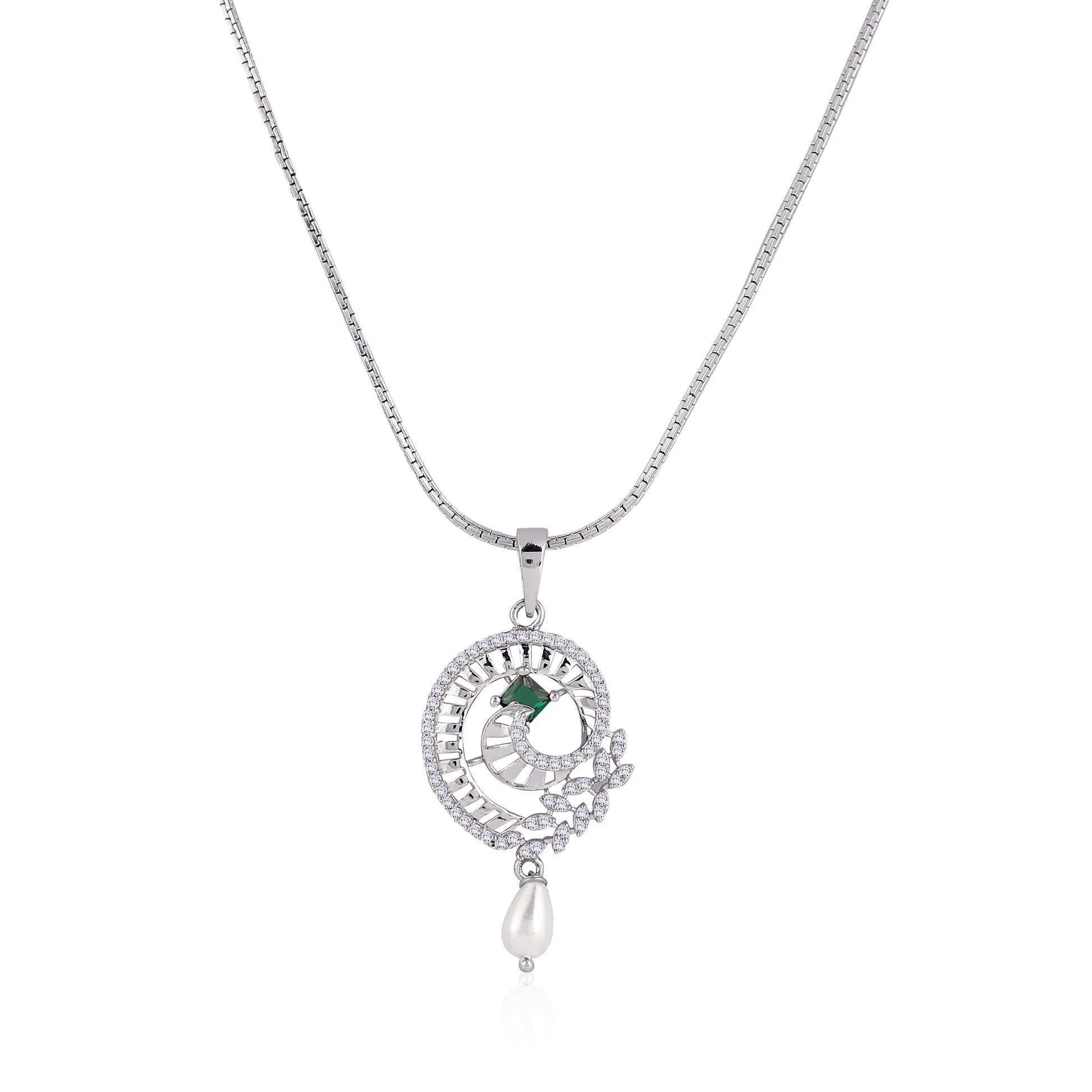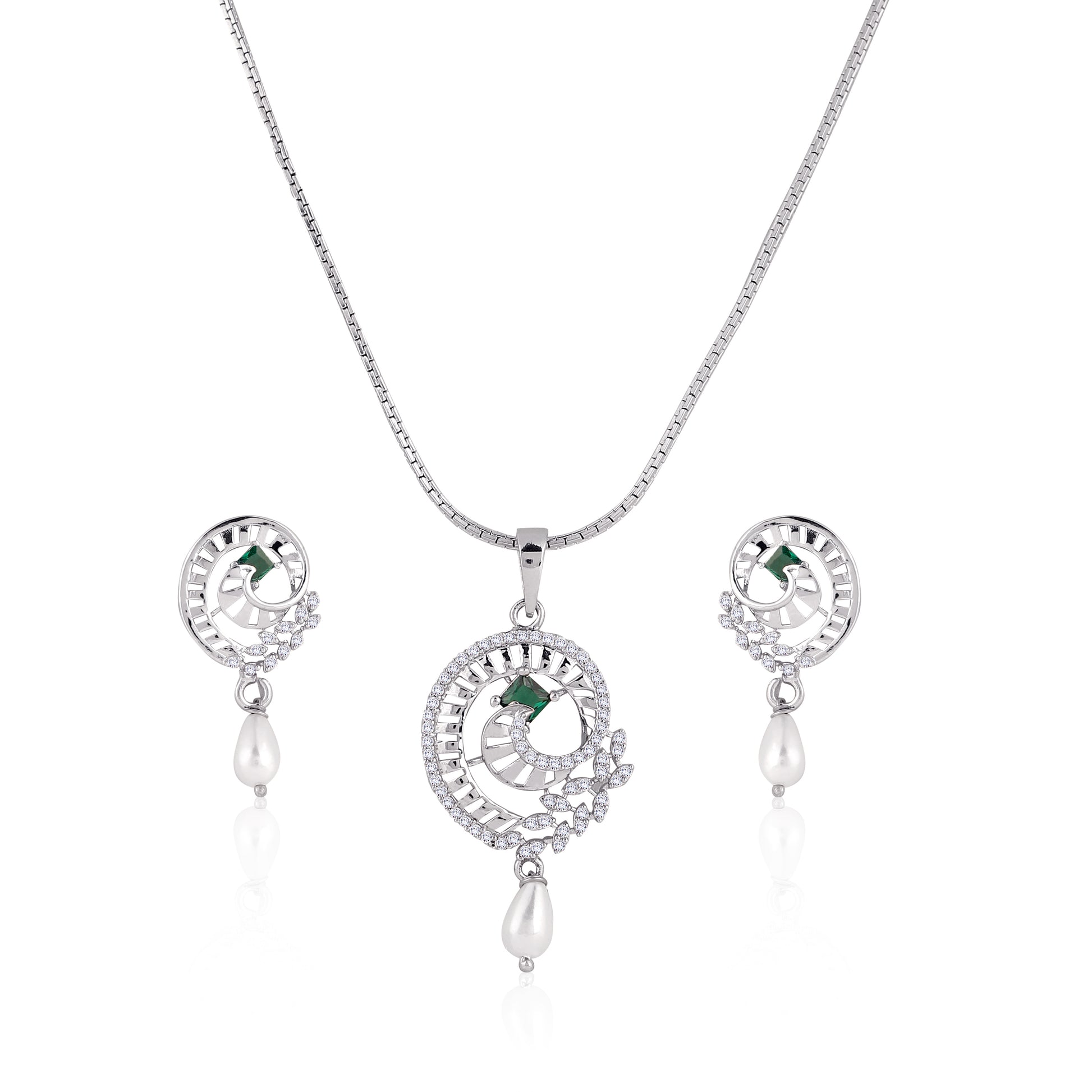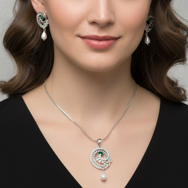 🦚 Elegant 925 Sterling Silver Pendant Set | Sparkling CZ & Pearls