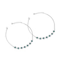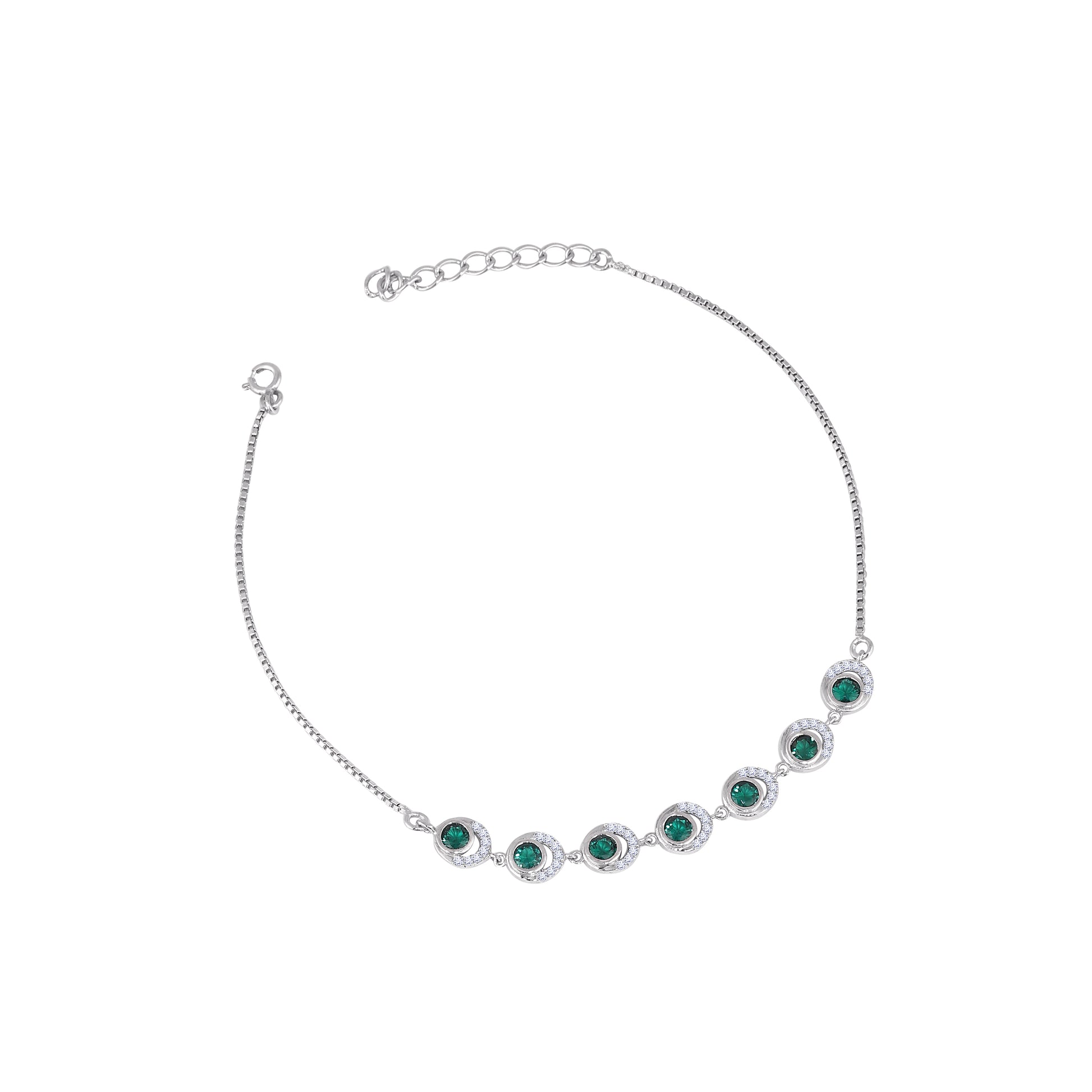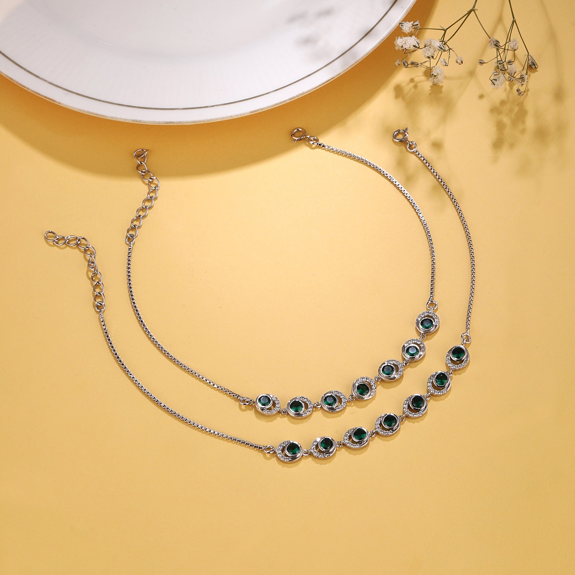 Step out in style with this captivating pair of station anklets, perfect for adding a touch of sophistication to your look. The design features a delicate chain adorned with alternating circles of vibrant emerald green crystals and sparkling clear cubic zirconia stones. Crafted from genuine 925 silver, these anklets offer both premium quality and an enduring shine. They are designed to sit comfortably and securely, providing a beautiful flash of color and sparkle with every movement.