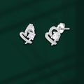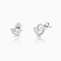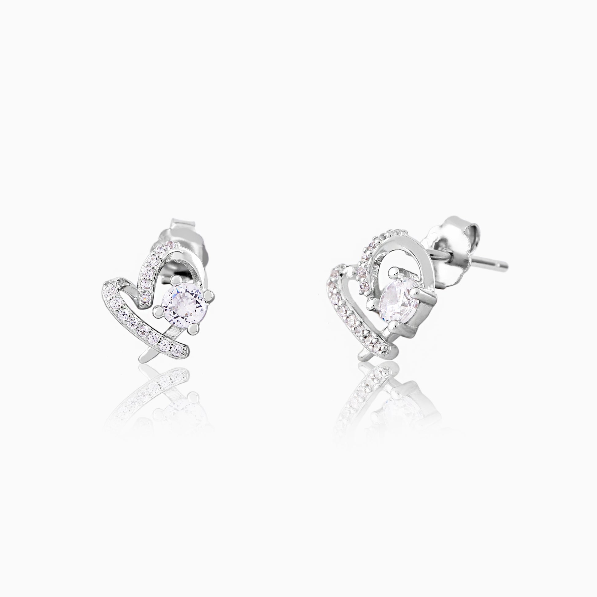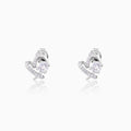 These delicate heart-shaped studs of 925 silver capture the essence of love and elegance. Featuring a sparkling round centerpiece hugged by a pavé-set, asymmetrical heart motif, they radiate warmth and charm. The subtle twist in the design adds a modern flair to a classic symbol, making these 92.5 silver searrings a perfect gift for romantic occasions or everyday elegance