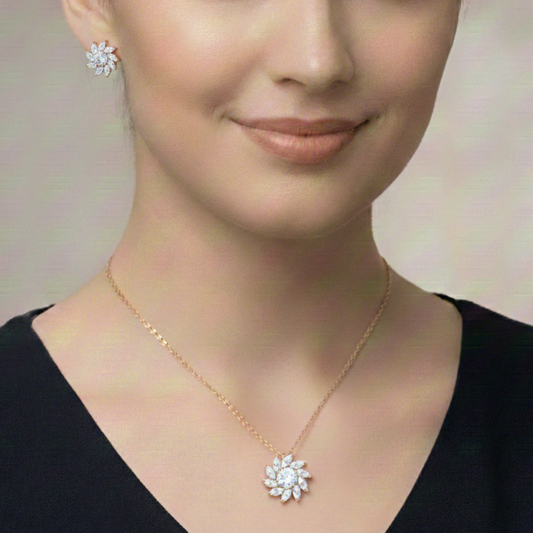 Floral Bloom CZ Pendant Set ✨ | 925 Silver