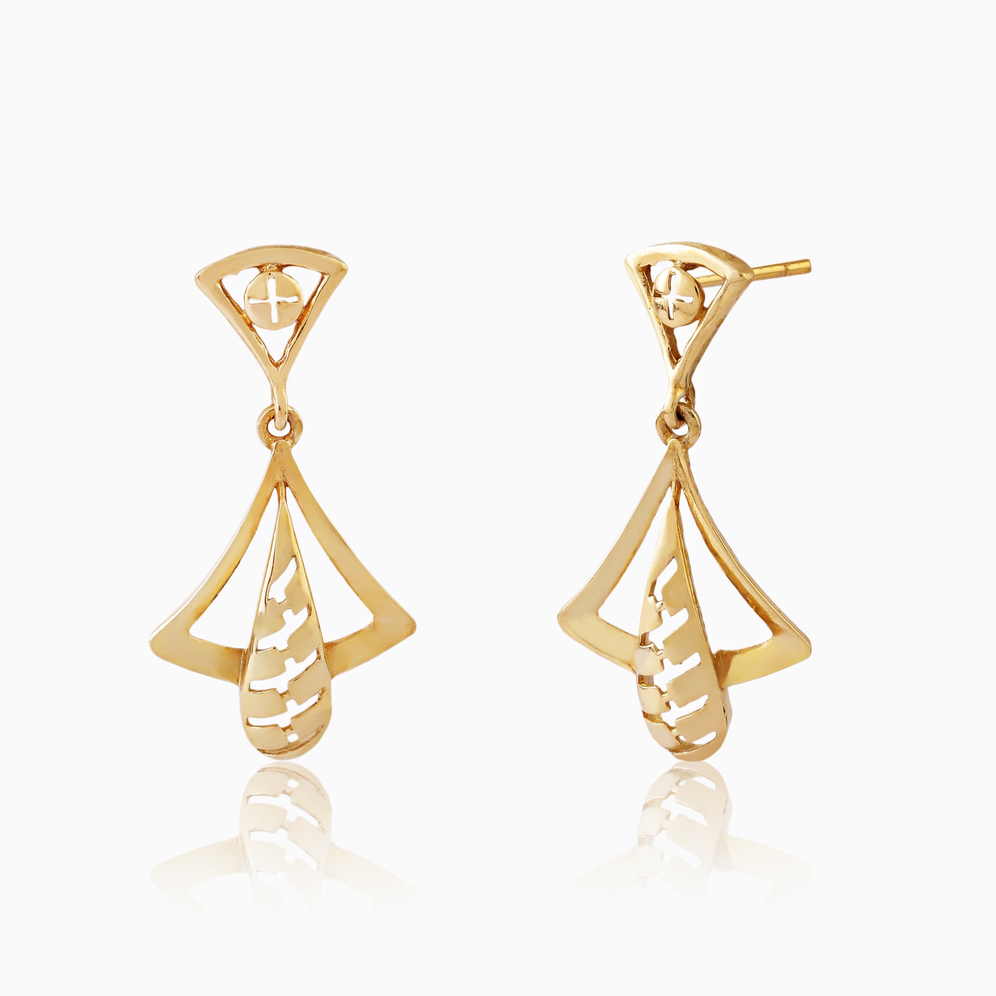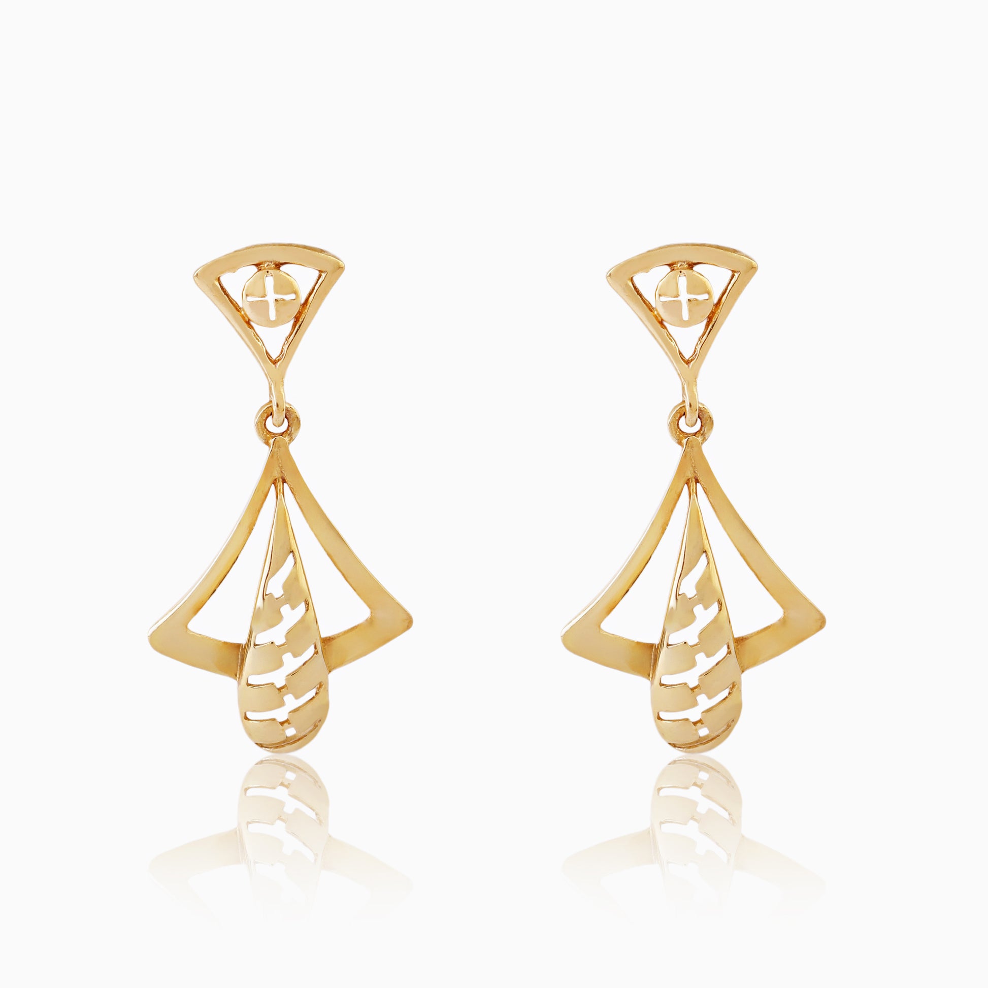 The Golden Aura Earrings combine modern geometry with natural elegance, crafted from sterling silver with a radiant gold finish. Featuring triangular frames with delicate leaf-inspired drops, these earrings bring a perfect balance of structure and grace. Lightweight and stylish, they are an ideal accessory for those who love contemporary jewelry with a hint of organic charm, suitable for both everyday wear and special occasions.