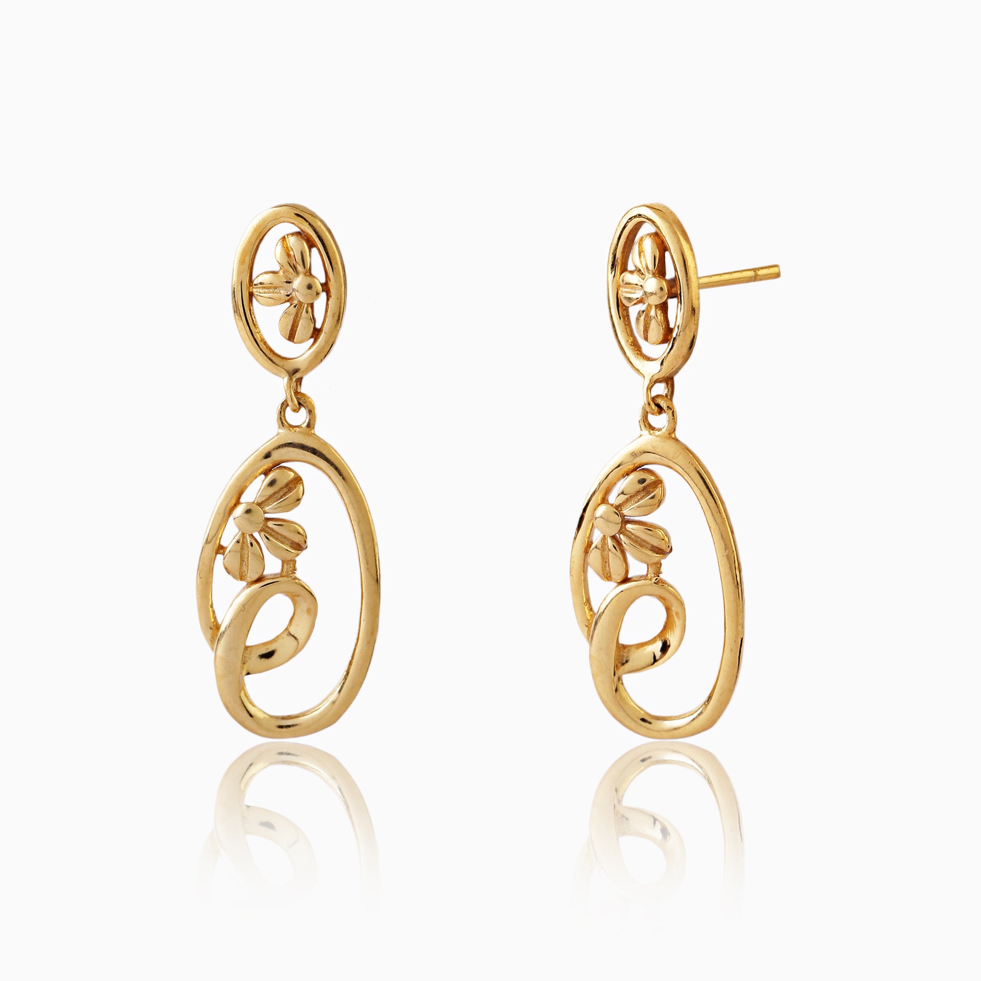 Add a touch of timeless elegance to your collection with our Golden Blossom Drop Earrings, crafted from premium 92.5 sterling silver and plated with a radiant gold finish. Featuring a delicate floral motif encased in graceful oval loops, these earrings perfectly blend modern charm with classic sophistication. Lightweight and versatile, they are ideal for both everyday wear and special occasions, offering a refined sparkle that complements any outfit.