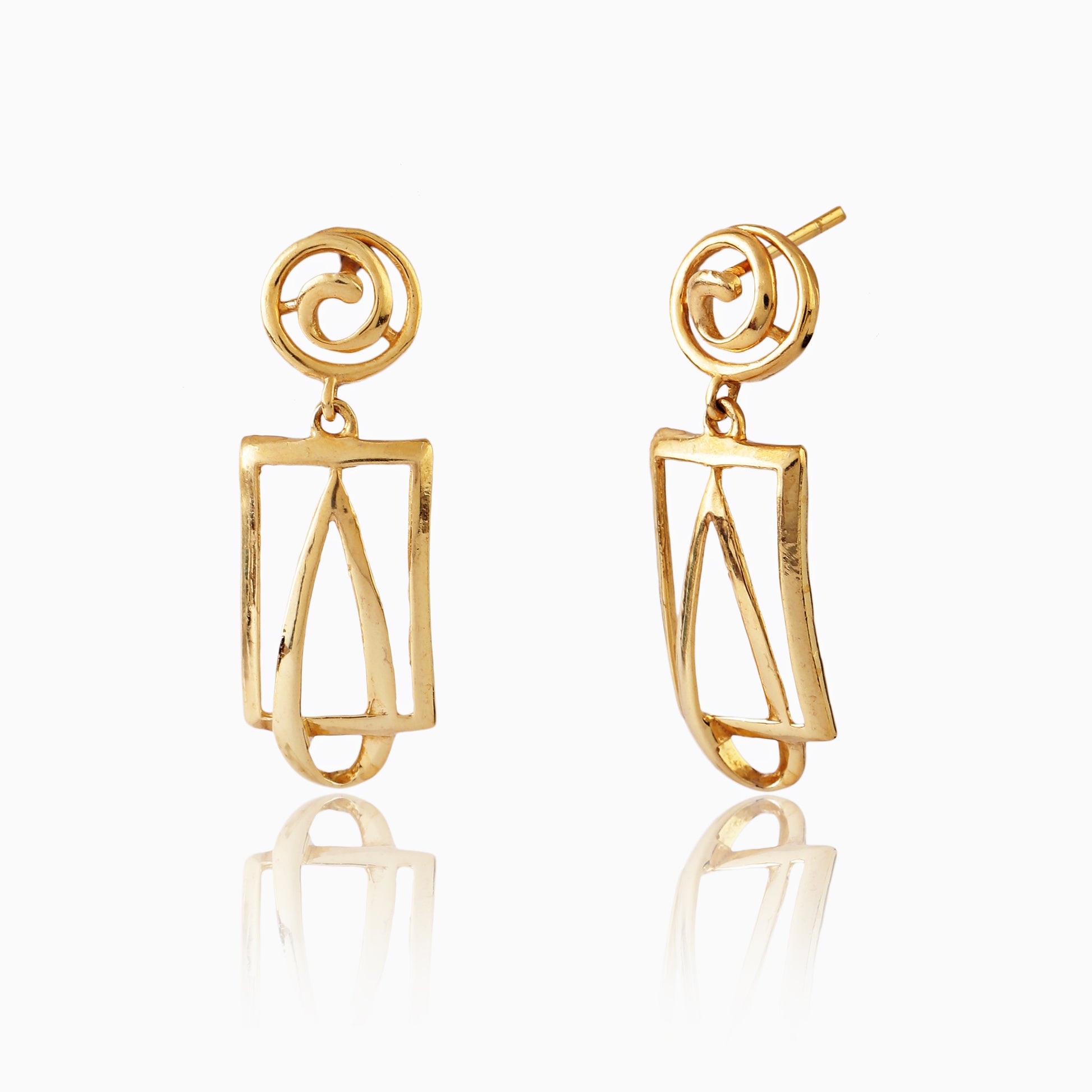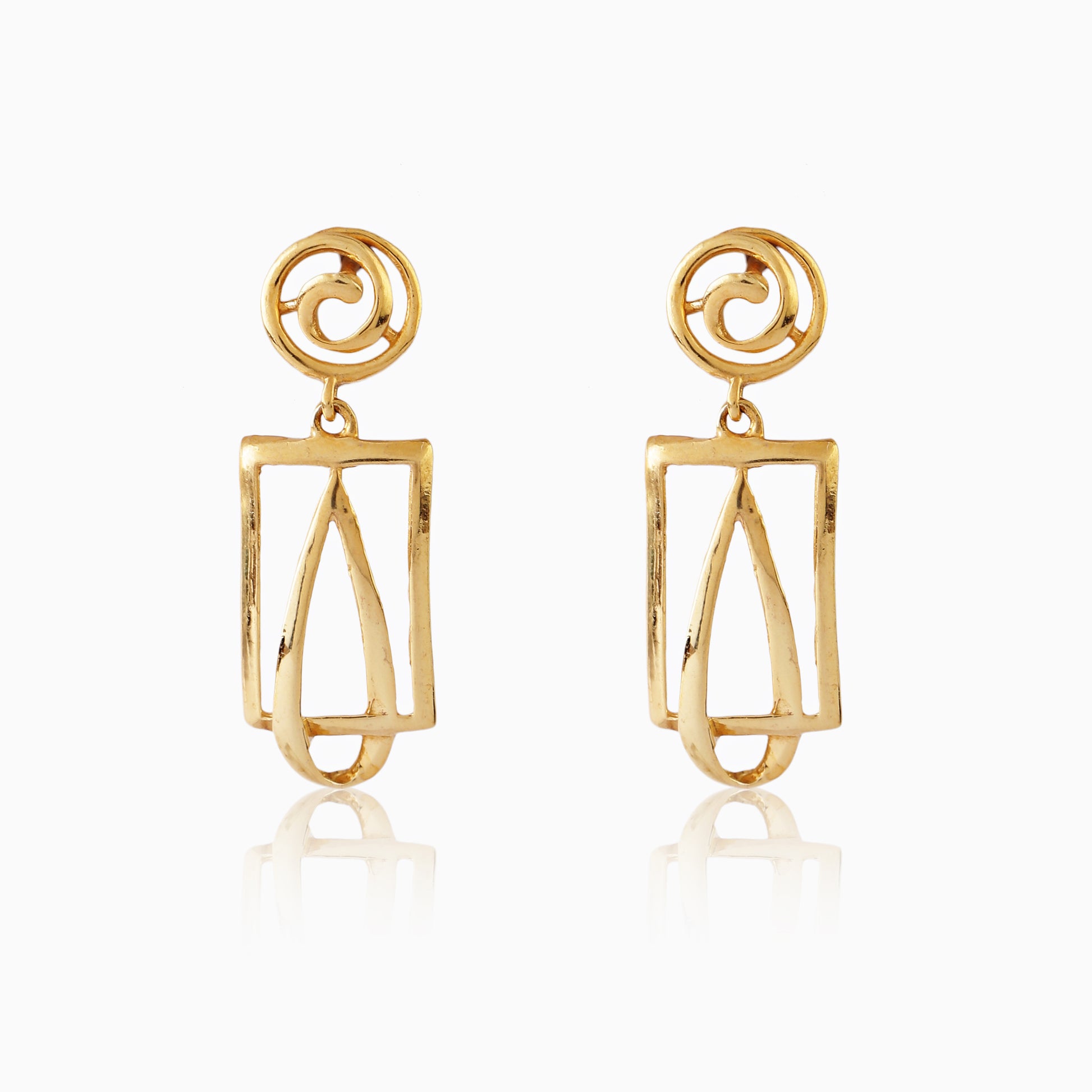 Celebrate the perfect blend of tradition and modernity with the Golden Harmony Sterling Silver Earrings. Made from 925 sterling silver and polished with a radiant gold finish, these earrings showcase a triangular stud with a delicate leaf motif, leading to layered diamond-shaped drops with intricate detailing. Their geometric-meets-nature design makes them a versatile statement piece, ideal for both festive occasions and chic contemporary looks.