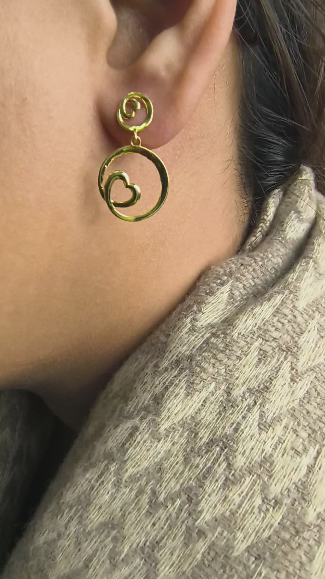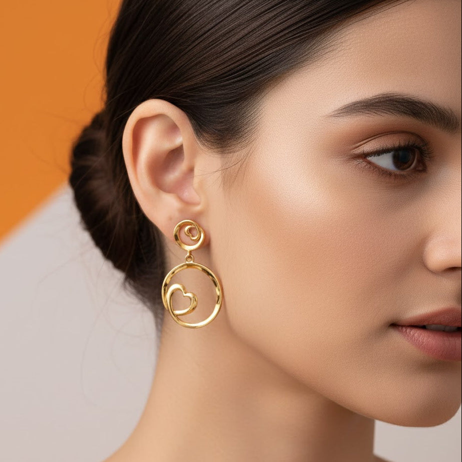 Golden Heart Swirl Earrings – 925 Sterling Silver