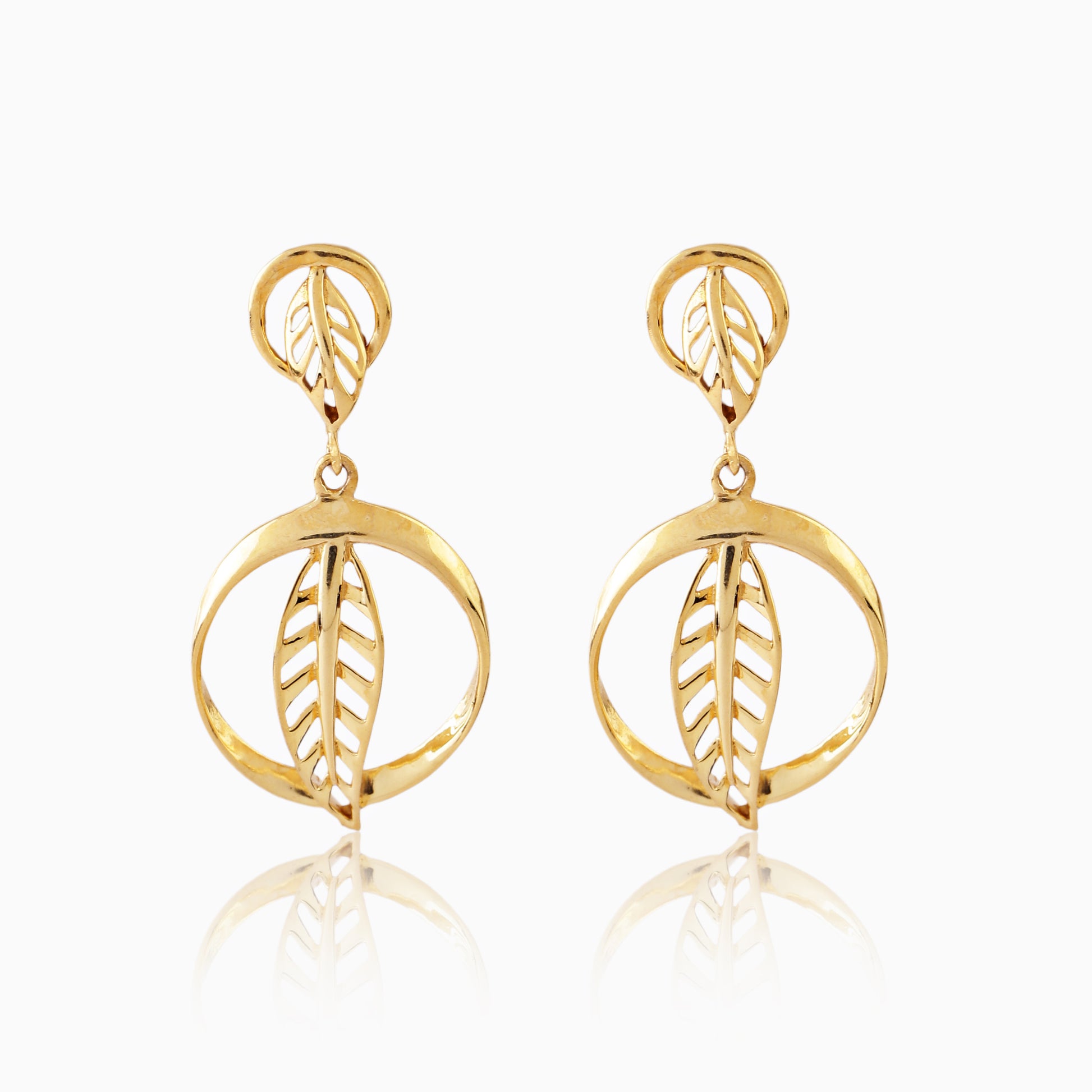 - Design: Leaf motif with circular drop and leaf stud