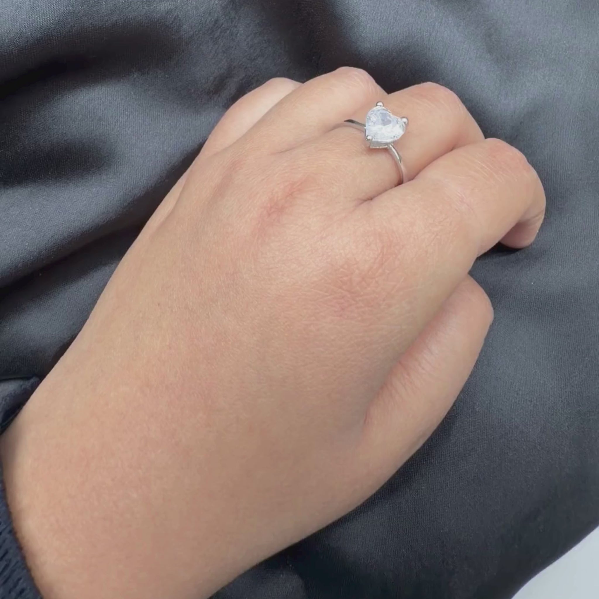 Heart-Shaped Solitaire Ring in 925 Silver ❤️