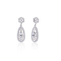 Crafted in 925 sterling silver, these drop earrings feature a modern geometric frame with a sparkling teardrop centerpiece, encircled by shimmering cubic zirconia. A perfect blend of elegance and contemporary style for any occasion.