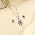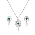 π Classic 925 Silver Green Stone & Pearl Drop Pendant Set