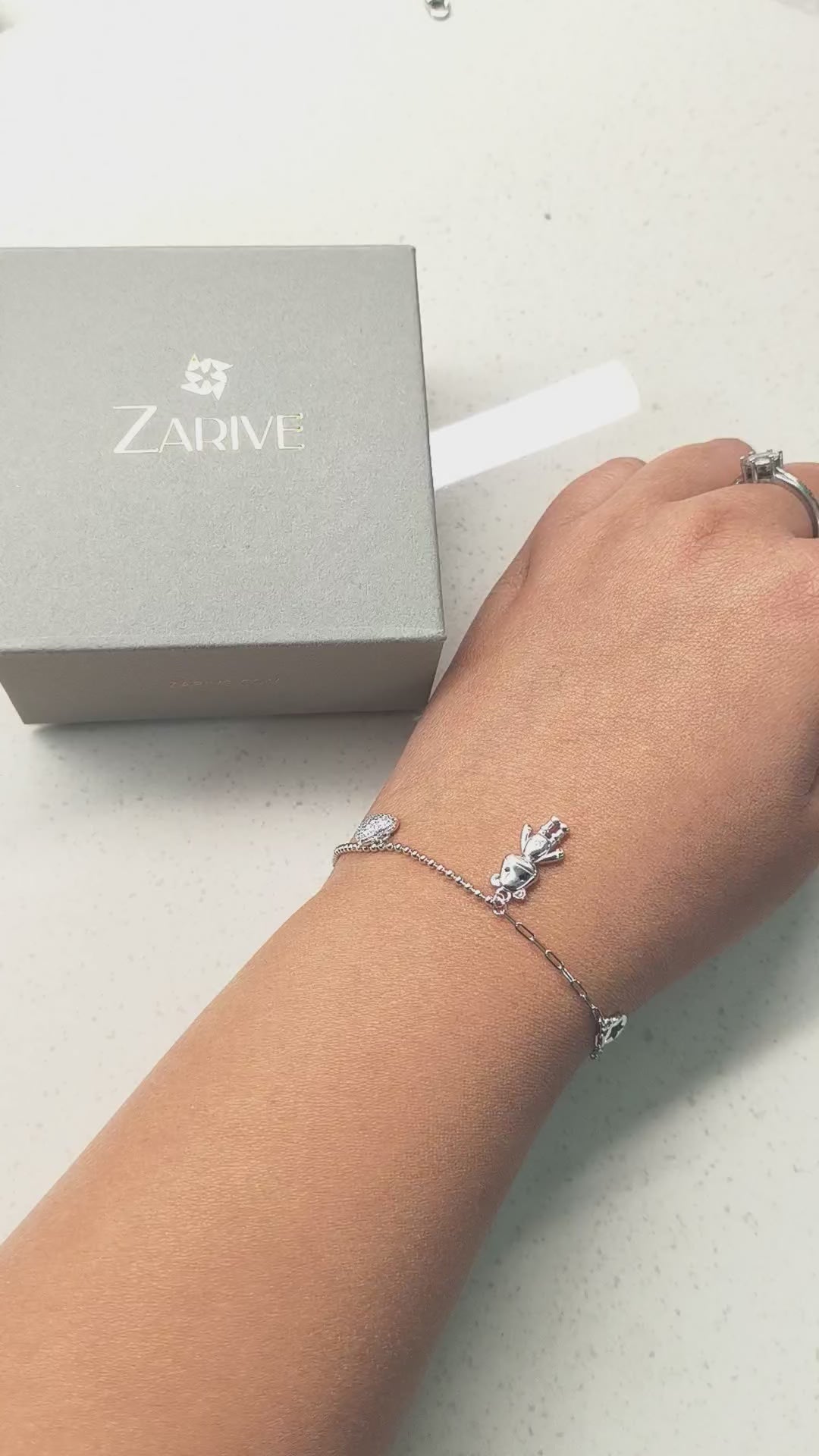 Adorn your wrist with this playful and elegant 925 silver charm bracelet, a beautiful essential for any jewelry lover. The design features a delicate chain hosting three charming details: a sparkling pavé heart, a cute star, and the standout teddy bear bracelet charm. Crafted from durable sterling silver, this piece offers lasting shine and includes an adjustable chain for a perfect fit. This delightful accessory easily adds subtle sparkle to any look, from casual to chic. Its charming appeal makes it an ideal gift for someone special.