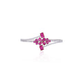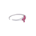 Elegant and striking, this 925 sterling silver kada bracelet showcases a vibrant floral design adorned with rich ruby-red gemstones. Two rectangular-cut stones enhance its bold charm, while the delicate cubic zirconia accents along the band add a sparkling finish. A perfect blend of tradition and modern style, this bracelet is ideal for weddings, festive occasions, and glamorous evening looks.