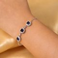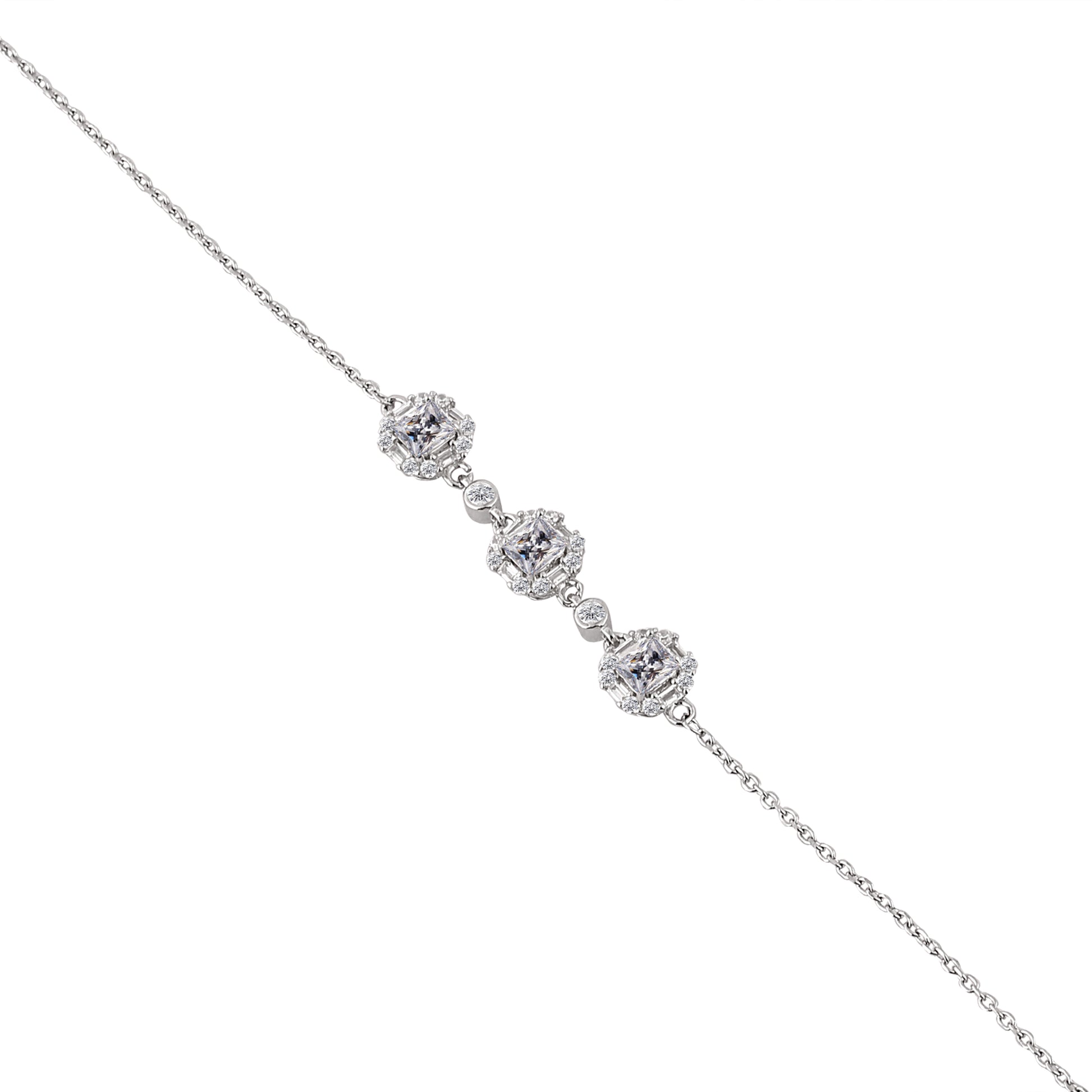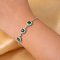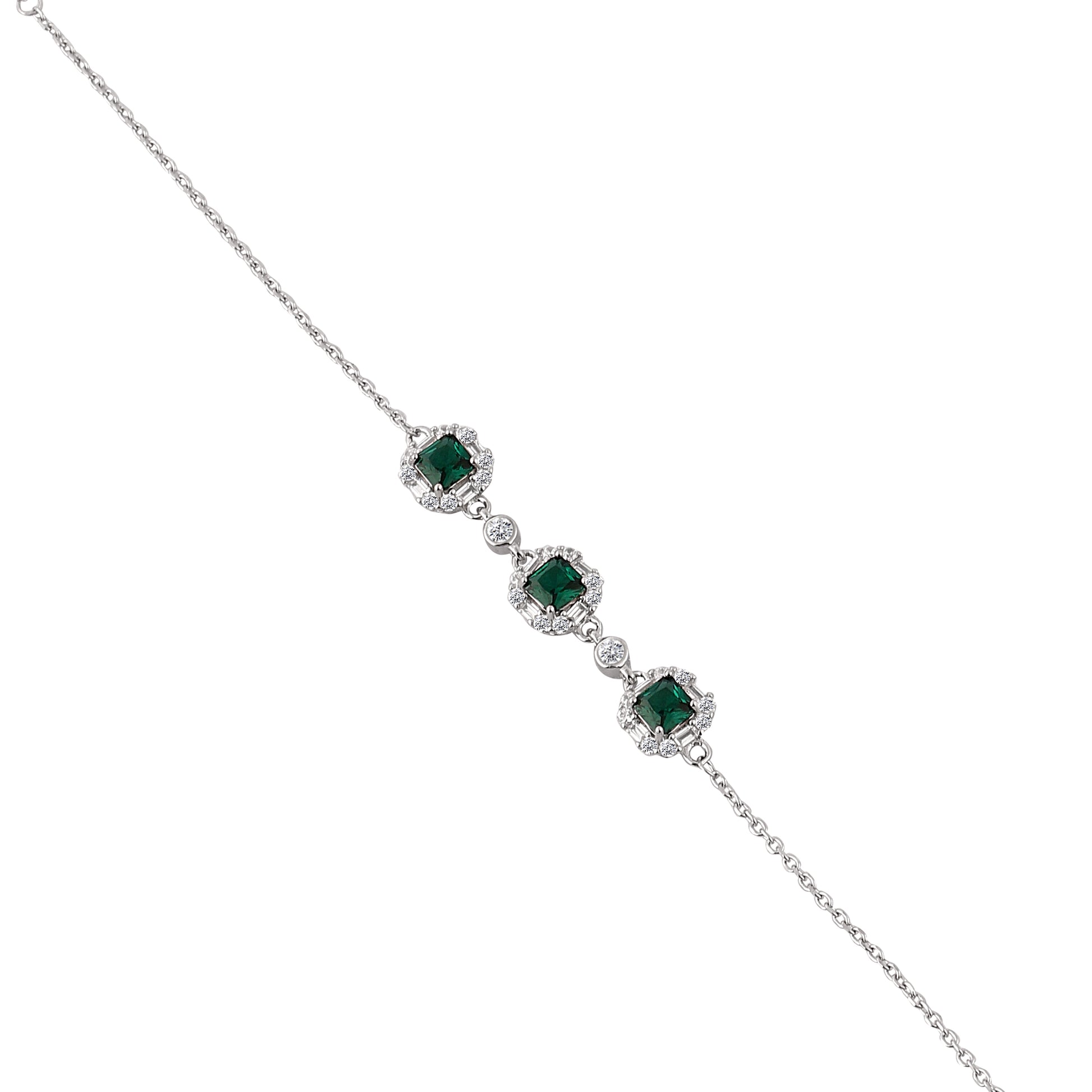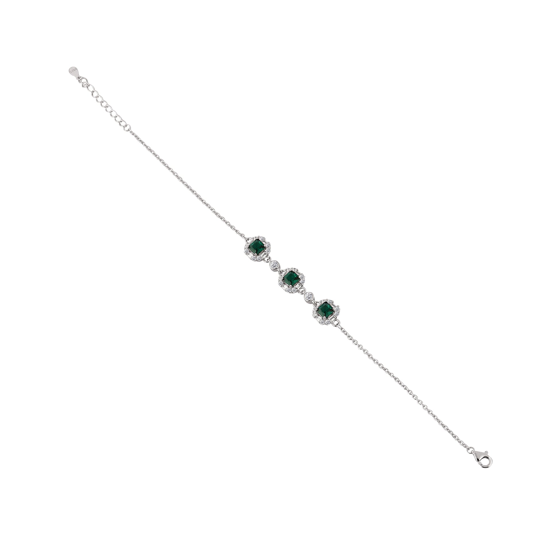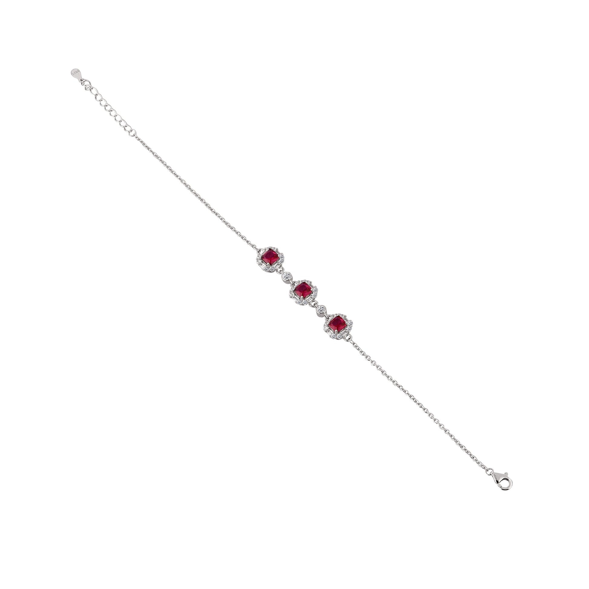 Add a touch of vibrant elegance to your wrist with our Sparkling Charm Bracelet Collection, meticulously handcrafted in premium 925 silver. This stunning bracelet is available in four breathtaking colorways—Fiery Ruby-Red, Timeless Diamond-White, Regal Sapphire-Blue, and Lush Emerald-Green—each featuring three brilliant princess-cut center stones. Every stone is enveloped in a majestic rectangular halo of shimmering accents and connected by brilliant circular spacers to create a continuous, luxurious glow. Expertly designed with a high-shine finish and an adjustable extender for a perfect, comfortable fit, this 925 silver bracelet is the ultimate choice for bridal wear, grand celebrations, or adding a sophisticated pop of color to your everyday style.