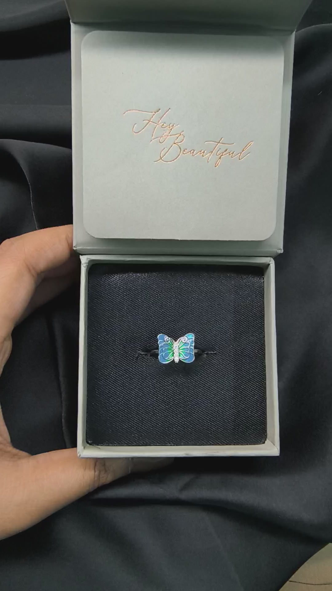🦋 925 Silver Teal Ombré Butterfly Ring