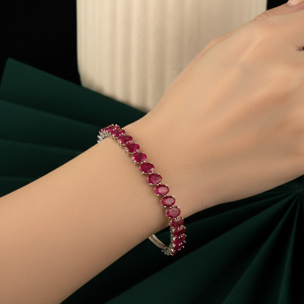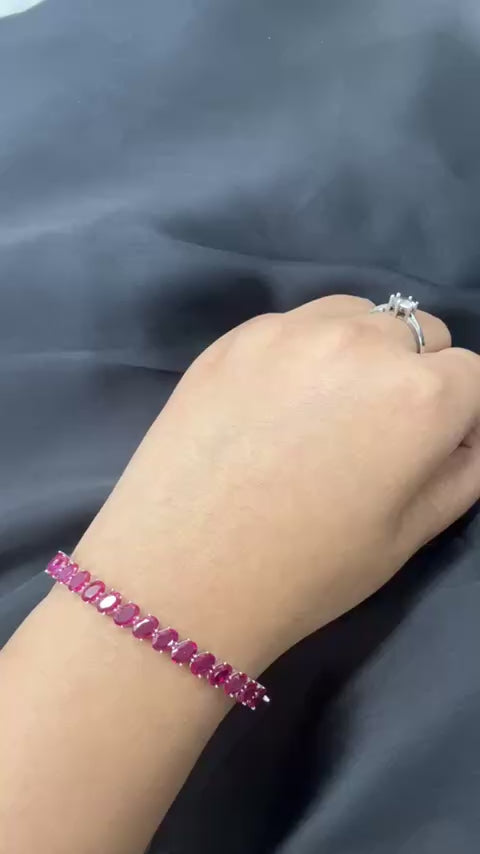 Vibrant Oval Ruby Stone Bracelet in 925 Silver ♦️
